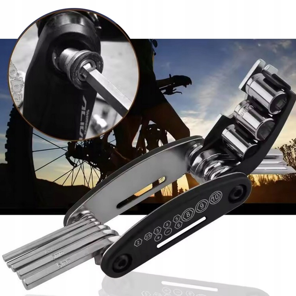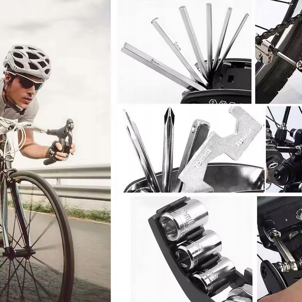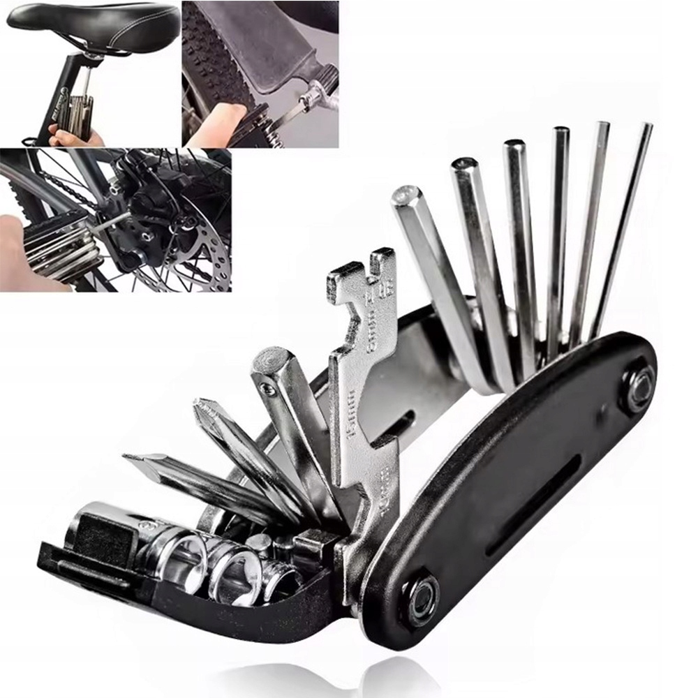 Цей невеликий зручний багатофункціональний інструмент містить аж 16 необхідних інструментів, які дозволять вам виконати більшість ремонтів і налаштувань себе. Виготовлений із міцної нержавіючої сталі, набір стійкий до зношування та корозії, а його компактна форма дозволяє легко помістити його в кишеню, рюкзак чи підсідельну сумку.