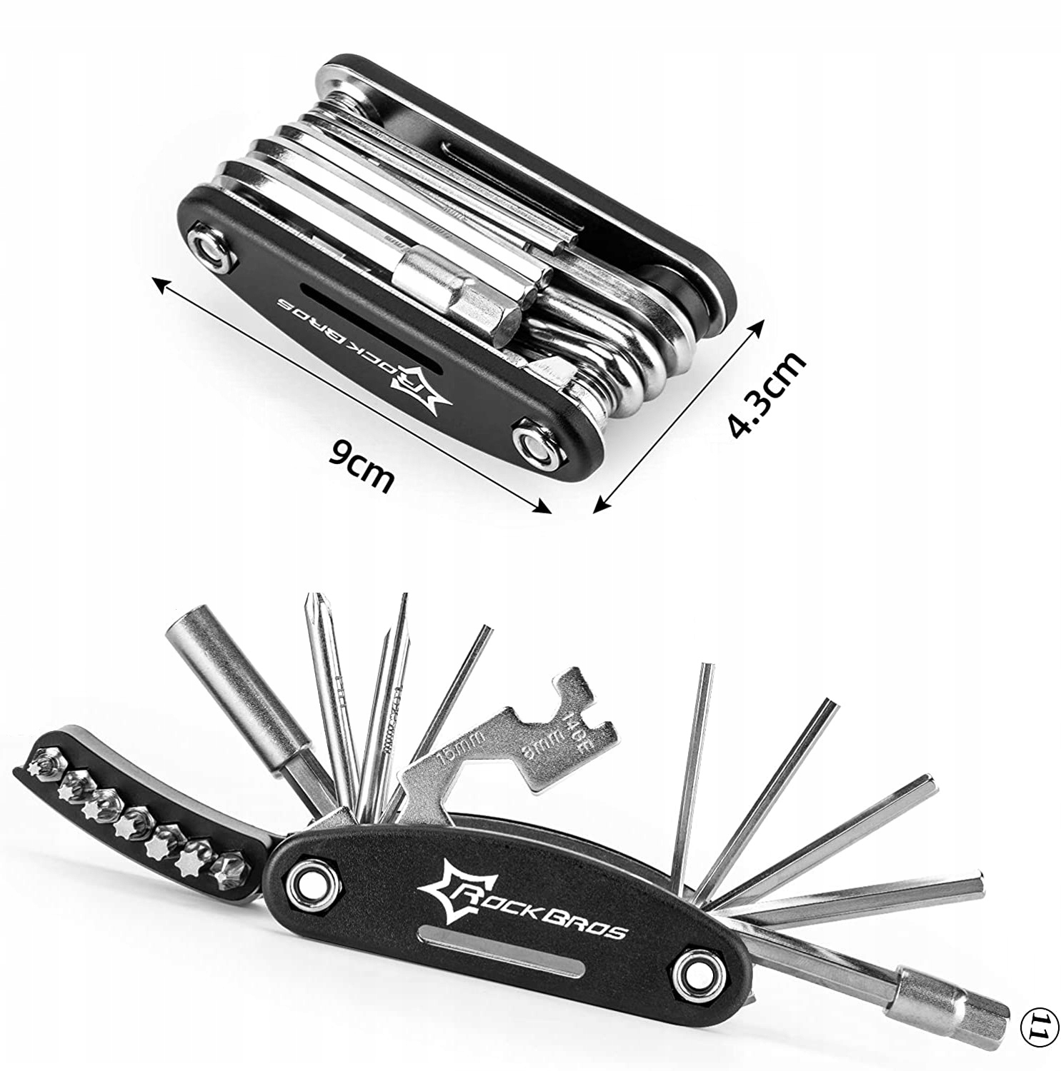 Набір містить 16 найважливіших інструментів для регулювання велосипеда. Усе це було укладено в компактну форму кишенькового ножа.