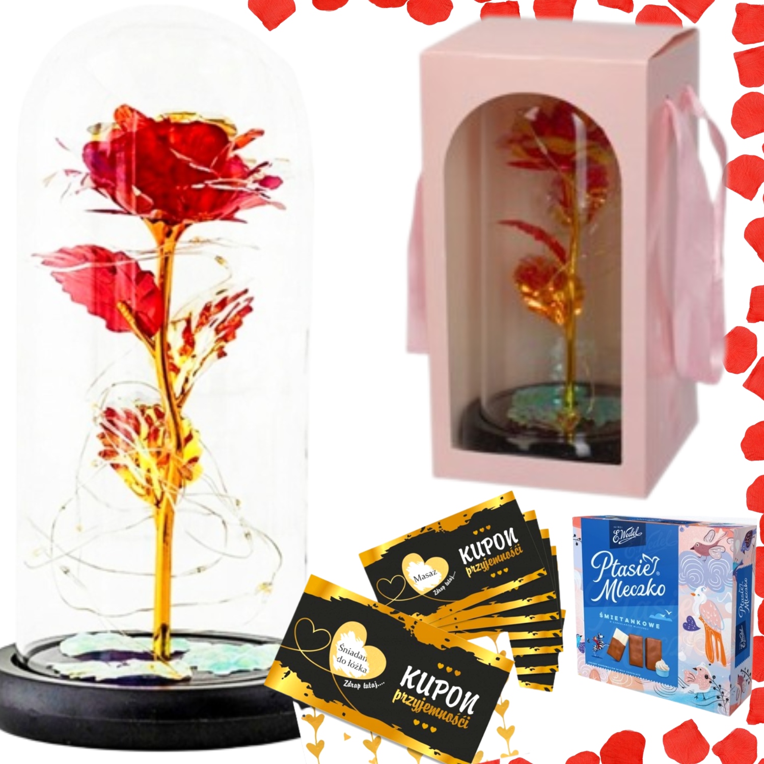 Оплачивая «НАБІР ВІЧНА ТРОЯНДА 4в1 ПРЕМІУМ ПОДАРУНОК НА СВЯТО ВАЛЕНТИНА», вы можете быть уверены, что данный товар из каталога «Цветы, букеты» будет доставлен из Польши и проверен на целостность. В цене товара, указанной на сайте, учтена доставка из Польши. Внимание!!! Товары для Евросоюза, согласно законодательству стран Евросоюза, могут отличаться упаковкой или наполнением.