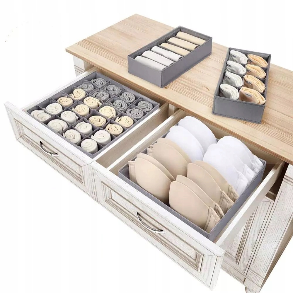 Вам набрид постійний безлад у ящиках для білизни? Набір із 4 органайзерів із відділеннями різного розміру назавжди наведе в них порядок!