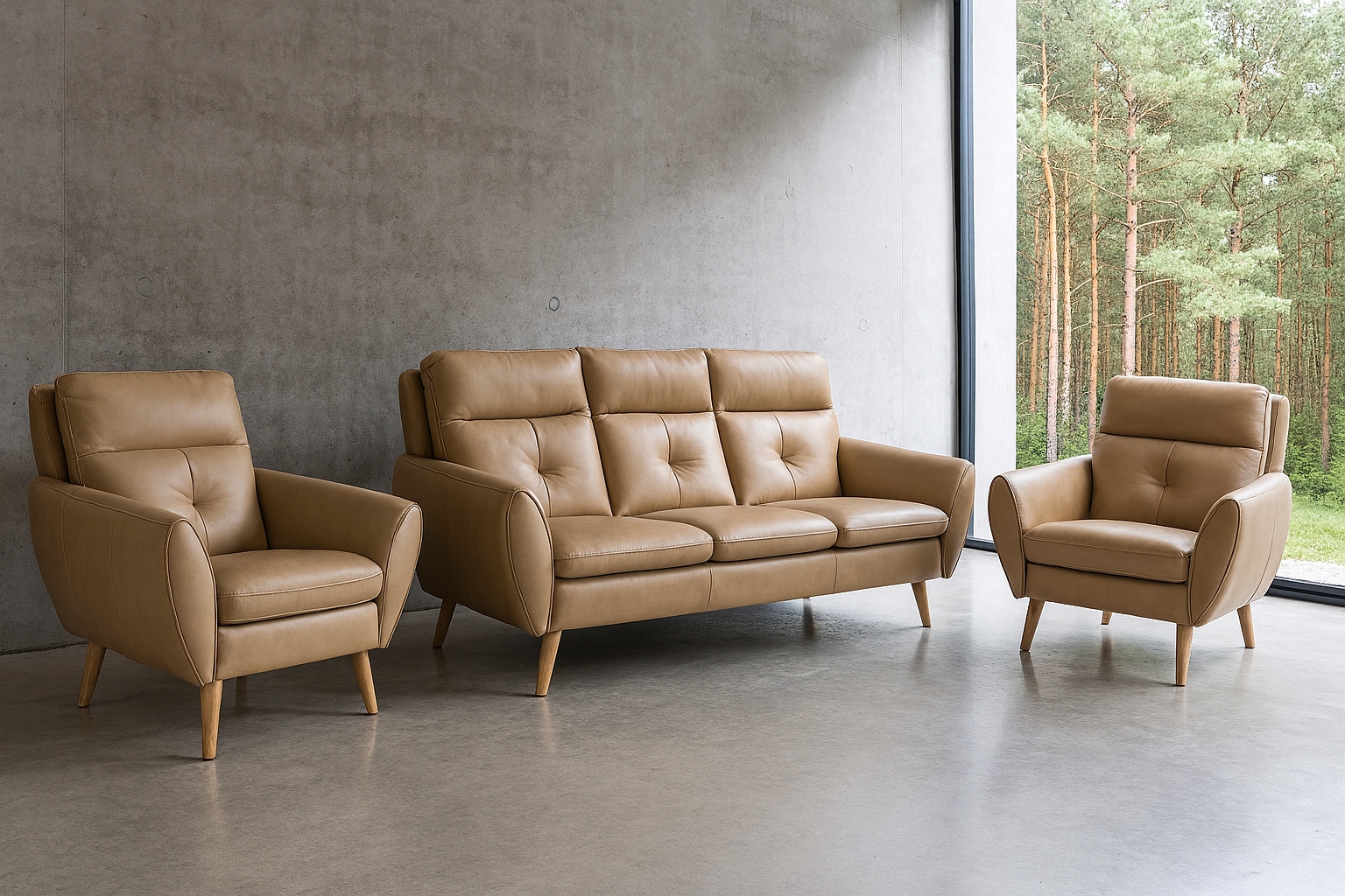 Це означає, що в наших меблях ви не побачите жодних вставок подвійної або меленої натуральної шкіри. Ми також не додаємо телятину шкіри- які не підходять для меблів, а лише куртки. Ми виробляємо лише повністю з натуральної (яловичини) натуральної шкіри- тип: Мадрас .