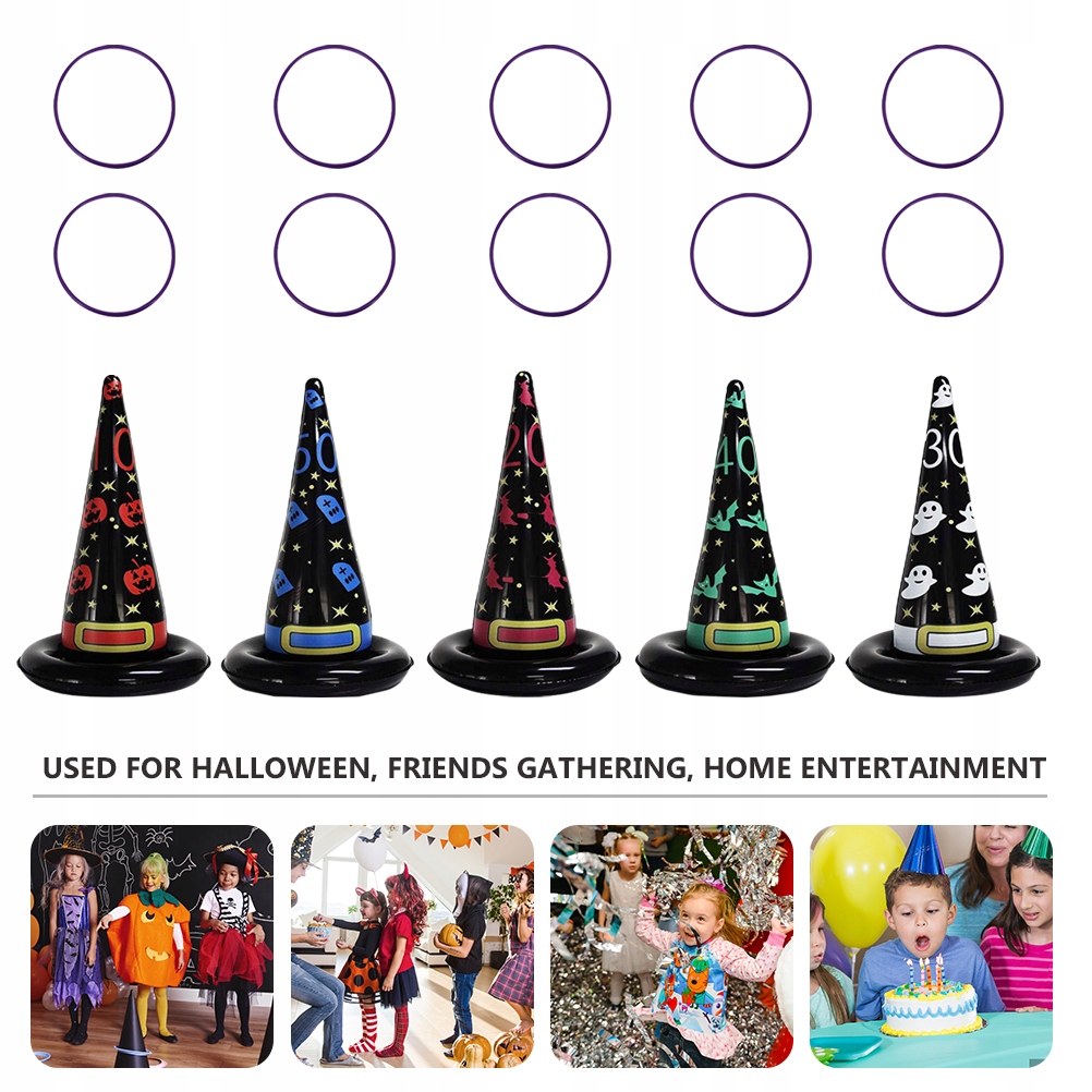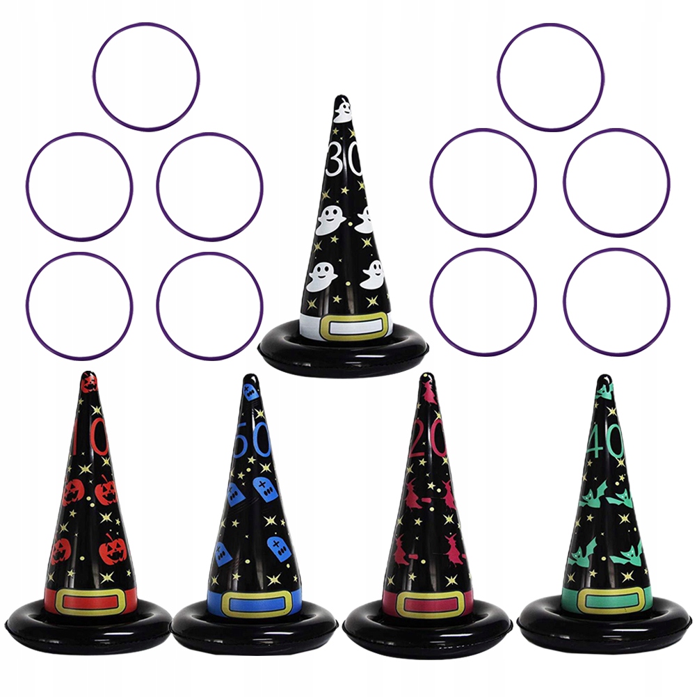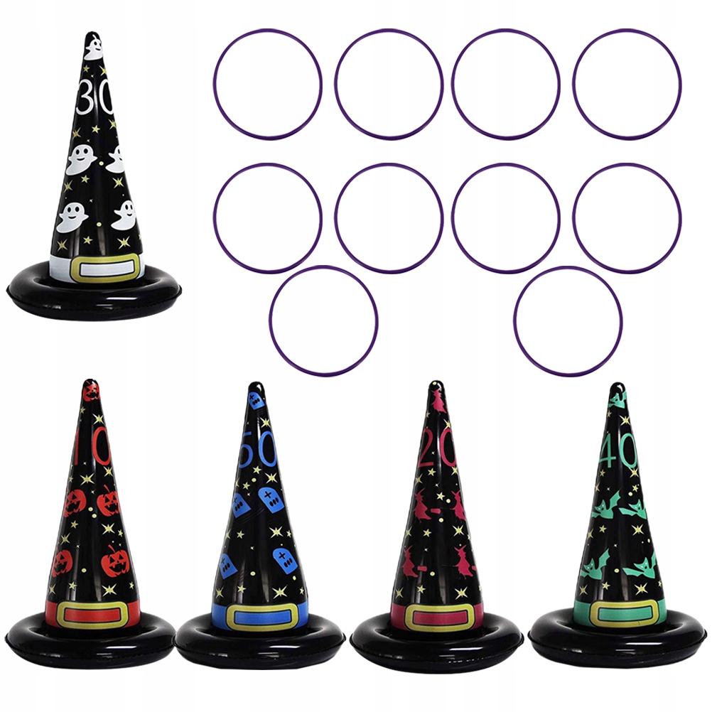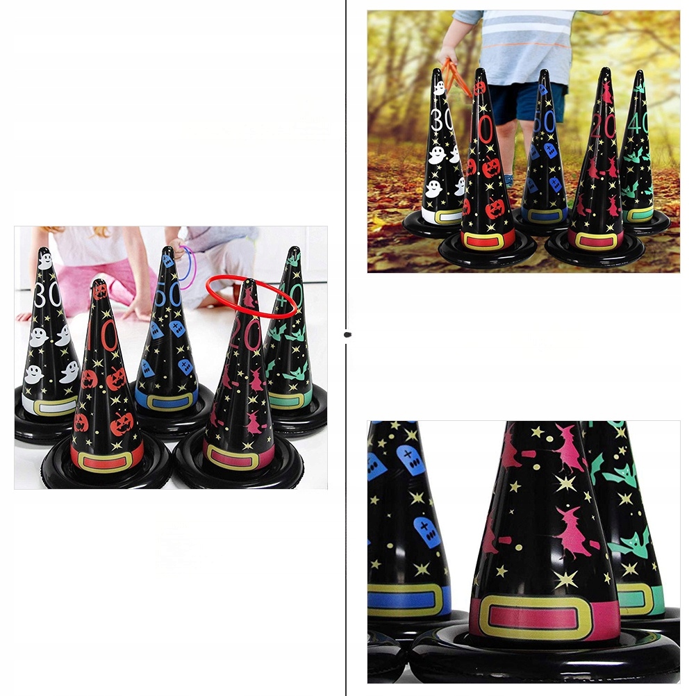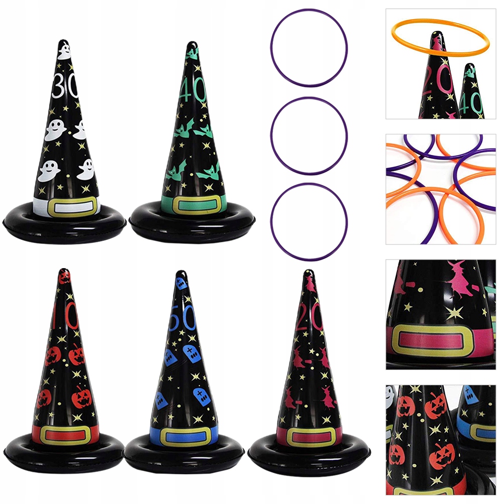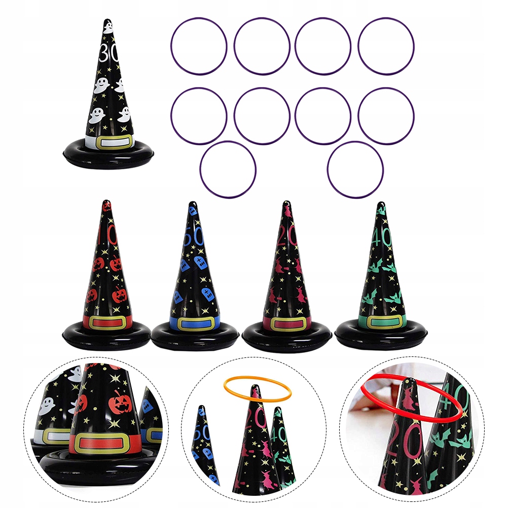 ✅ten. Елемент - це набір іграшок для кидаючих кілець на вечірки. Виготовлений з найвищої якості матеріалу та прикрашений малюнком капелюха відьом