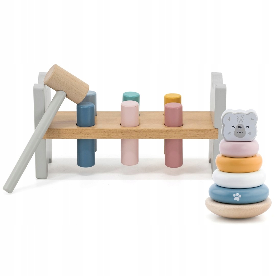 VIGA POLARB НАБІР ДЕРЕВ'ЯНА ПІРАМІДА + ТЮНІНГ ВЕДМЕДЬ З МОЛОТКОМ БІЛИЙ ВЕДМІДЬ MONTESSORI