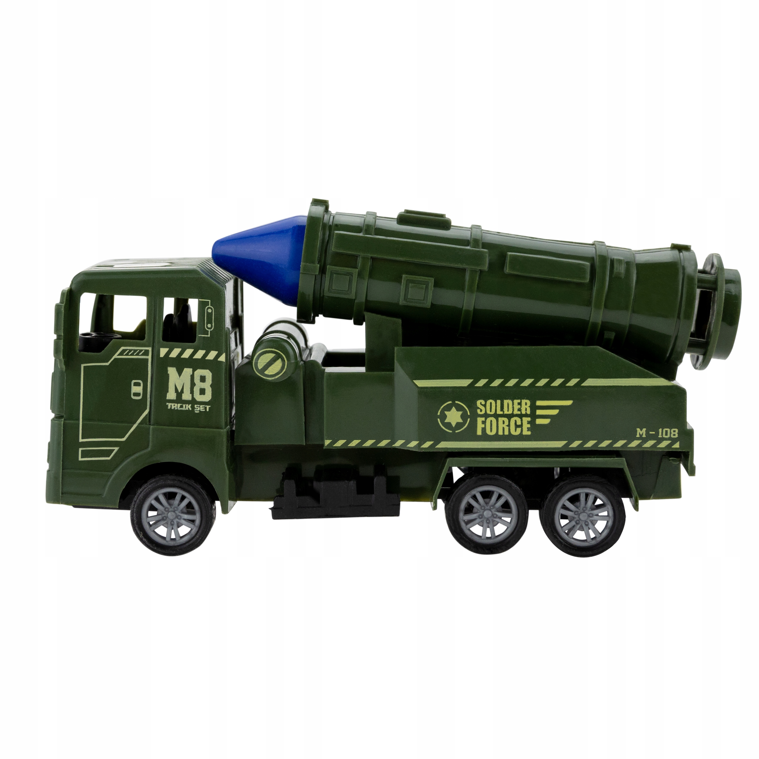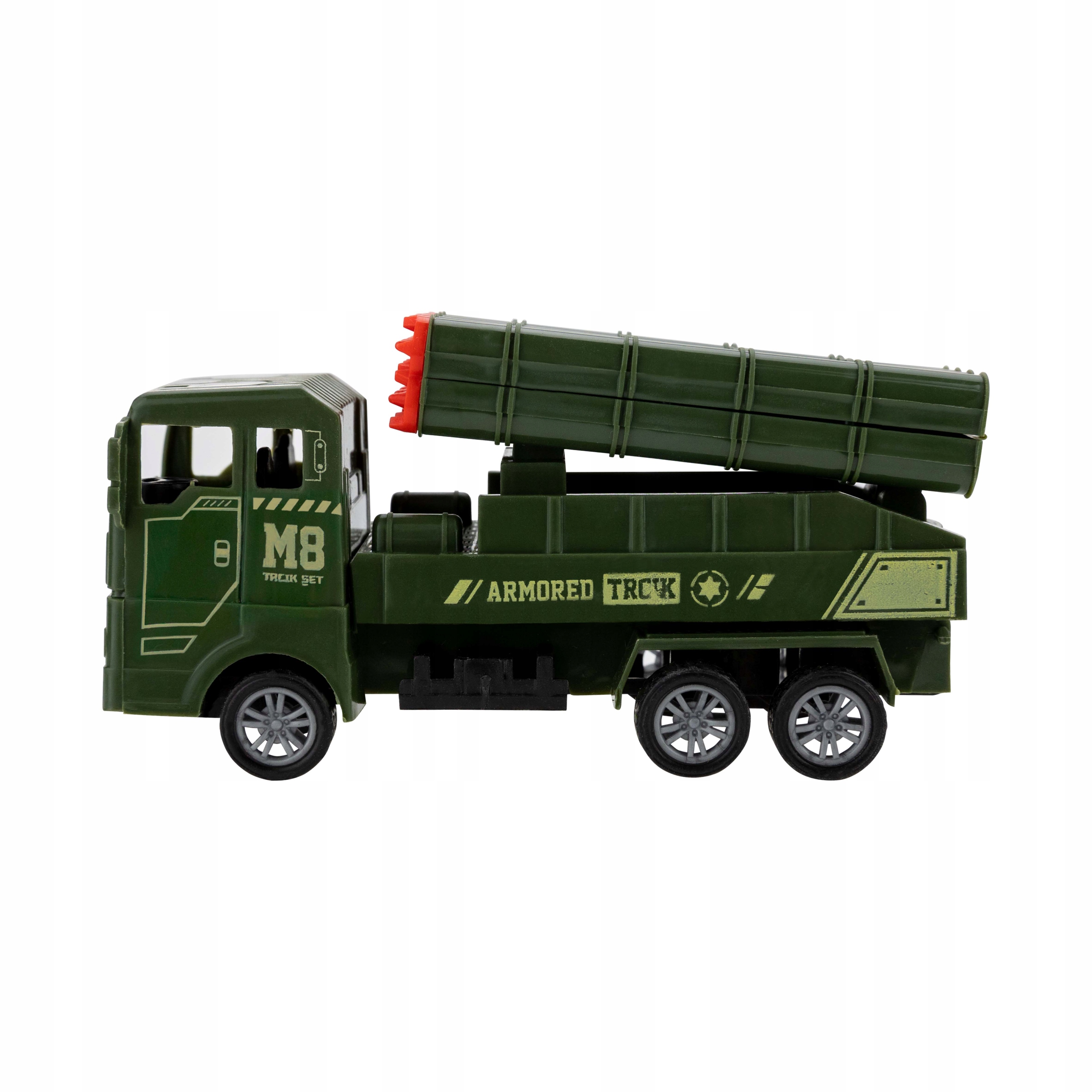 На нашому аукціоні представлений набір військових автомобілів. До нього входять дві ракетні установки, автоцистерна та вантажівка. Завдяки їм дитина, граючись, може розпочати роботу, яку виконує в армії.