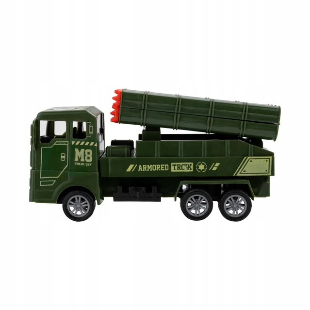 Наш аукціон включає набір військових автомобілів. До нього входять дві ракетні установки, автоцистерна та вантажівка. Завдяки їм дитина, граючись, може розпочати роботу, яку виконує в армії.
