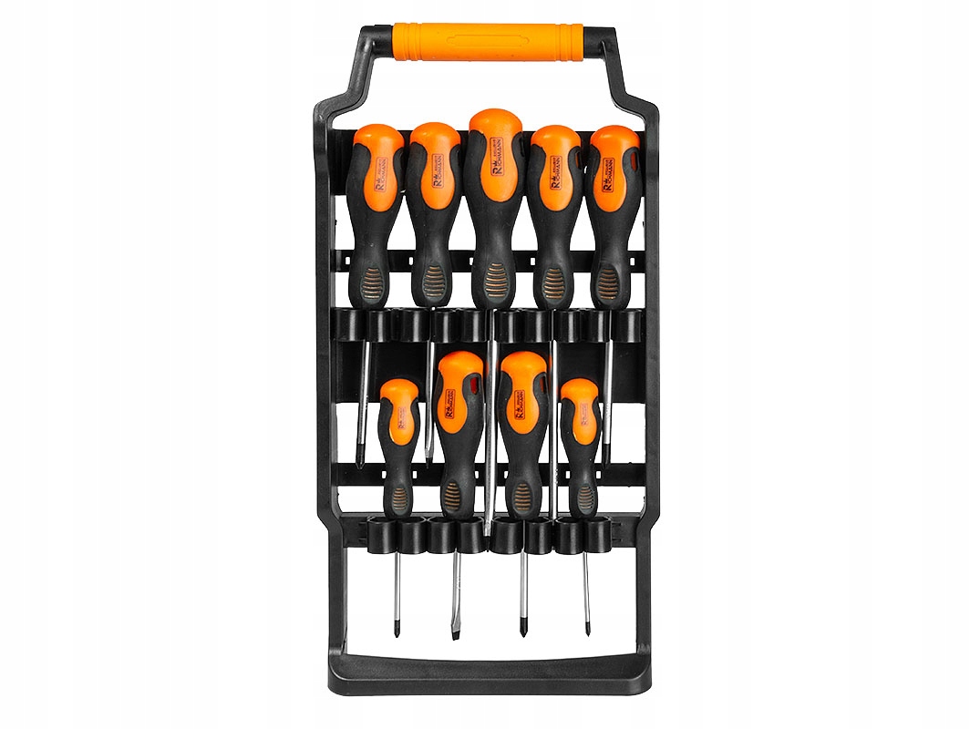 Набір містить 9 штук плоских і хрестових викруток, розміщених у пластиковій підвісці.
