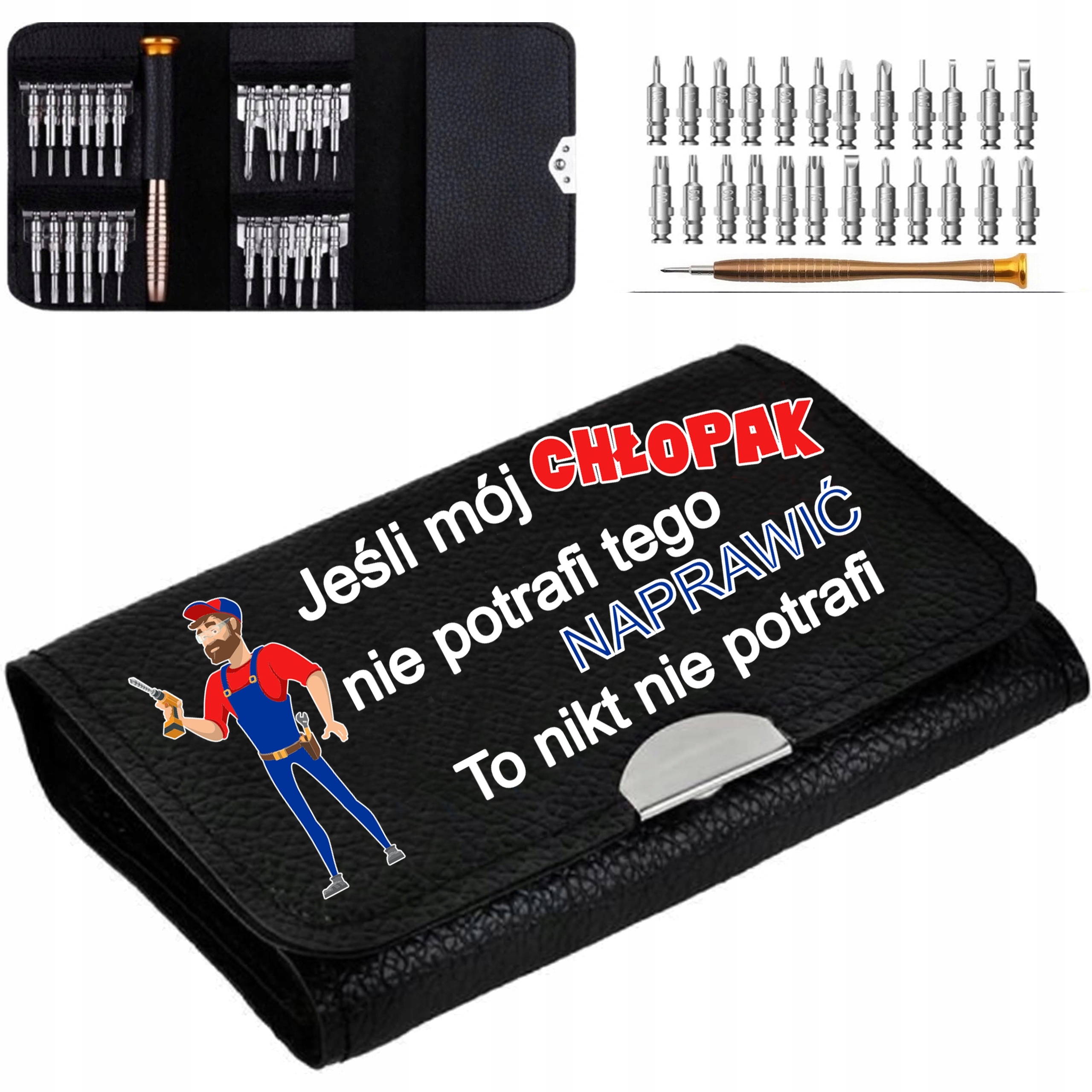 Набір включає 24 точні поради , які в ідеалі адаптовані до вимогливого ремонту цих пристроїв, а також профілею та комфортна ручка, яка полегшує роботу. Гвинти зберігаються в стильному випадку , який розроблений таким чином, що він нагадує гаманець.