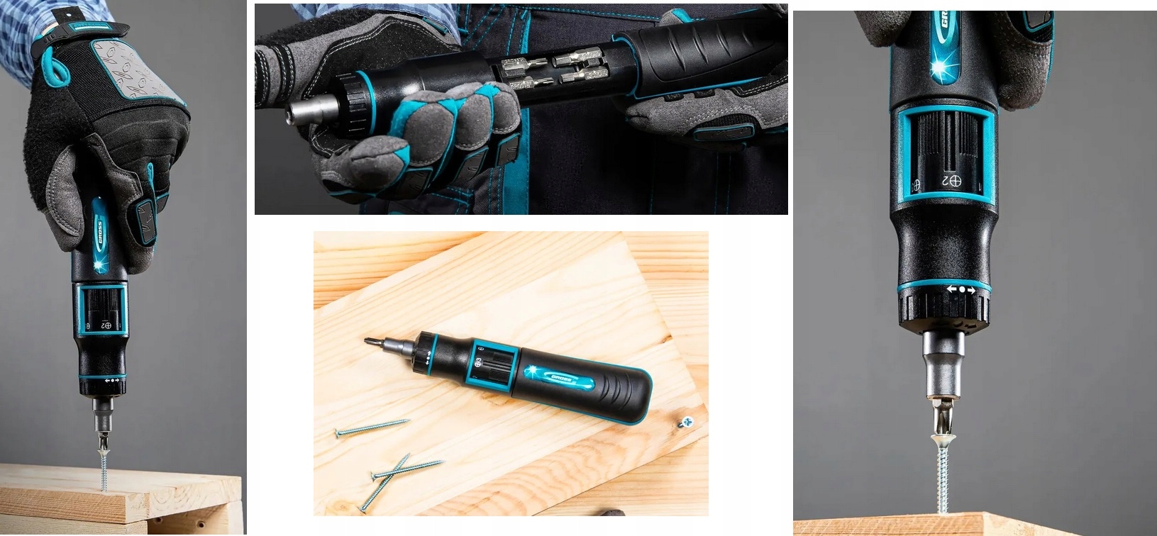 - Чиста вага: 0,333 кг - Світлова конструкція забезпечує комфорт роботи, навіть при тривалому використанні. 4 Завдяки 9 змінним укусам з різними формами (SL, pH, T, квадрат) ідеально підходить для багатьох застосувань, таких як збірка меблів, ремонт автомобілів або домашні роботи. 4