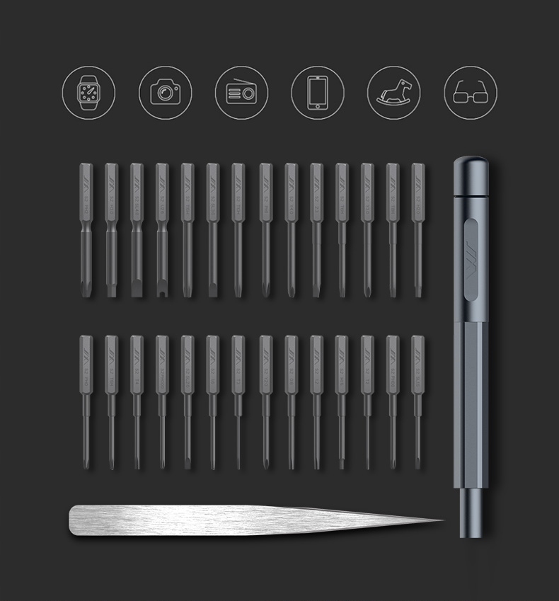 jimihome jm-gnt-30 -ексклюзивний набір 30 викруток (біти) з легкою алюмінієвою ручкою, призначеною для точного ремонту сервісних телефонів та смартфонів та всієї побутової електроніки.