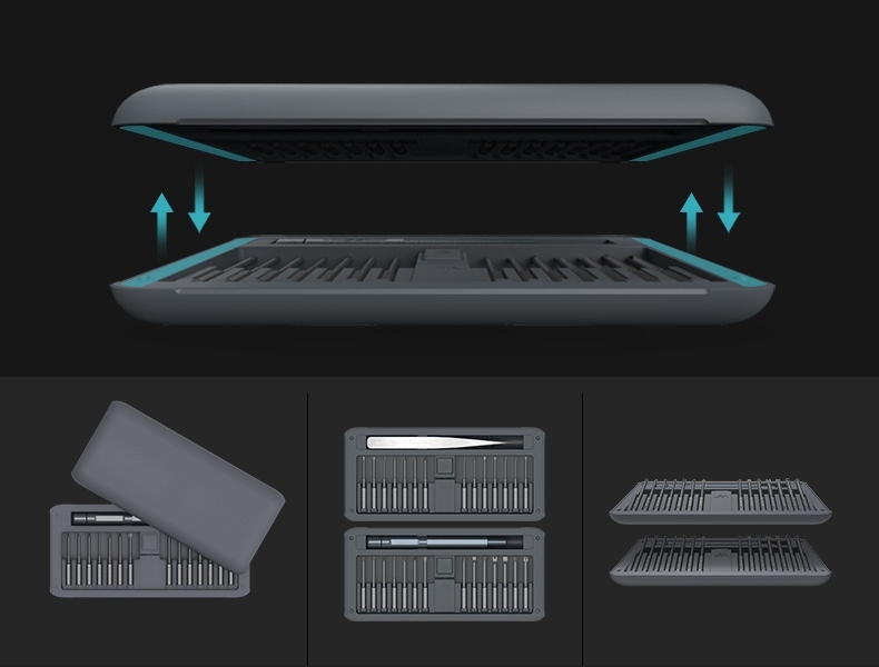 Завдяки магнетично закритому упаковці (знизу та вгору) доступу до шматочків дуже швидко. Біти також встановлені магнітно. 4