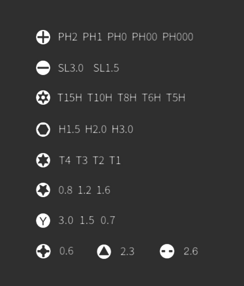 - 3 Капки пенталоба (п'ять -точок) -P2 0,8 мм, P5 1,2 мм, P6 1,6 мм (мобільні телефони, мобільні телефони, жорсткі диски, MacBook/MacBook Air/MacBook Pro та інші пристрої)