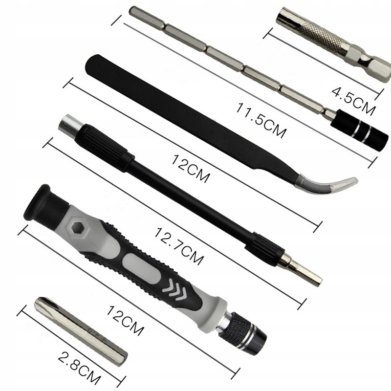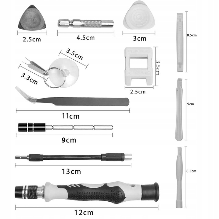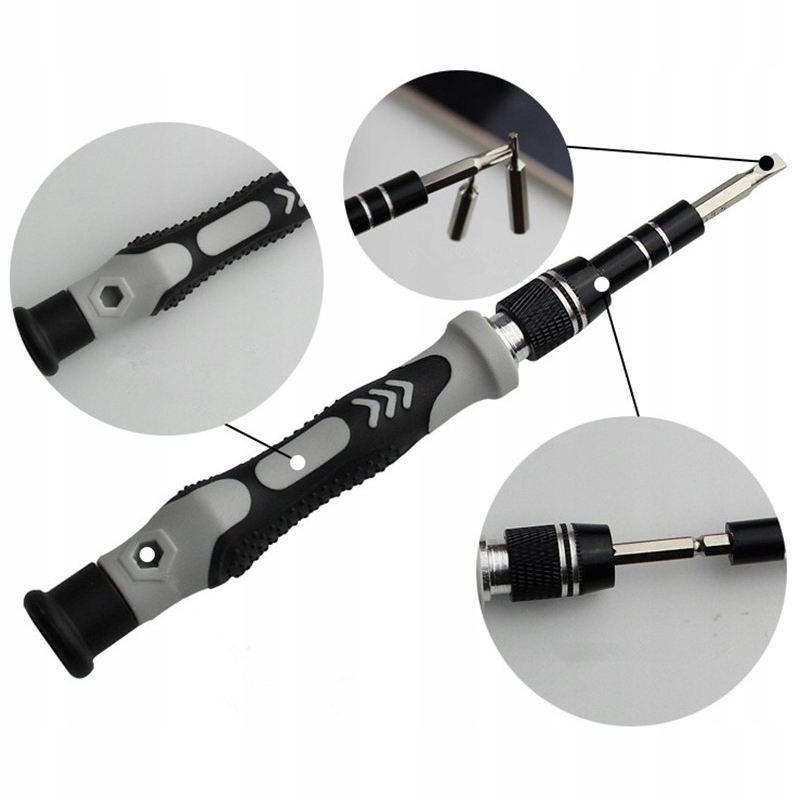Завдяки маленьким і точним бітам набір також буде ідеальним для всіх типів послуг GSM і малої електроніки. Крім того, в набір також входять такі елементи, як: присоска для демонтажу LCD і відкривачки корпусу, які полегшать різні ремонтні роботи.