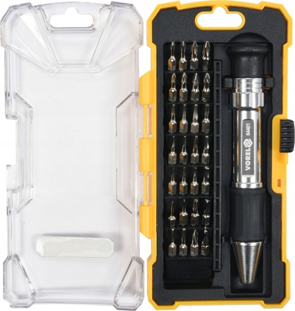 Набір прецизійних біт з викруткою від Vorel 64401. Виготовлено з міцної хромованадієвої інструментальної сталі CrV.