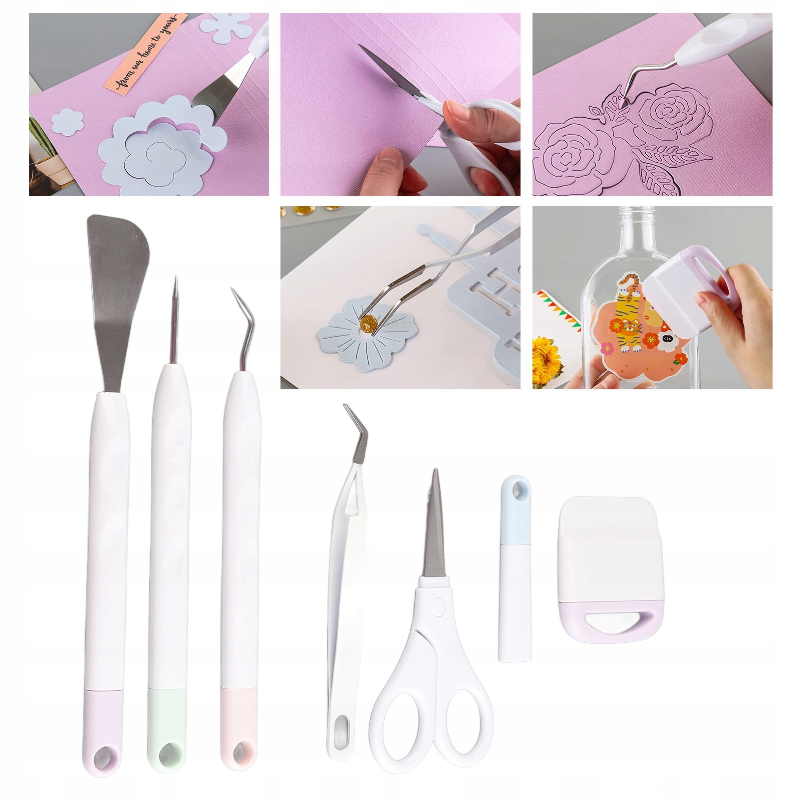 1. Багатоцільовий: набір інструментів для художнього різьблення можна використовувати для видалення бур’янів, художнього різьблення, рукоділля своїми руками тощо з великою практичністю. 2. Маленькі портативні: вінілові інструменти для різьблення легкі, їх легко носити і зручно тримати протягом тривалого часу без втоми. 3. Повні інструменти: Вініловий набір інструментів для прополки включає 6 інструментів, включаючи лопату, пінцет, петельник, ножиці, захист для ножиць, скребок. 4. Чудова практичність: інструменти для художнього різьблення своїми руками для різання, малювання, виготовлення листівок до дня народження, тиснення для виготовлення ювелірних виробів тощо. 5. Широке застосування: набір інструментів для прополки підходить для дому, художньої студії, студії, офісу чи класу тощо.