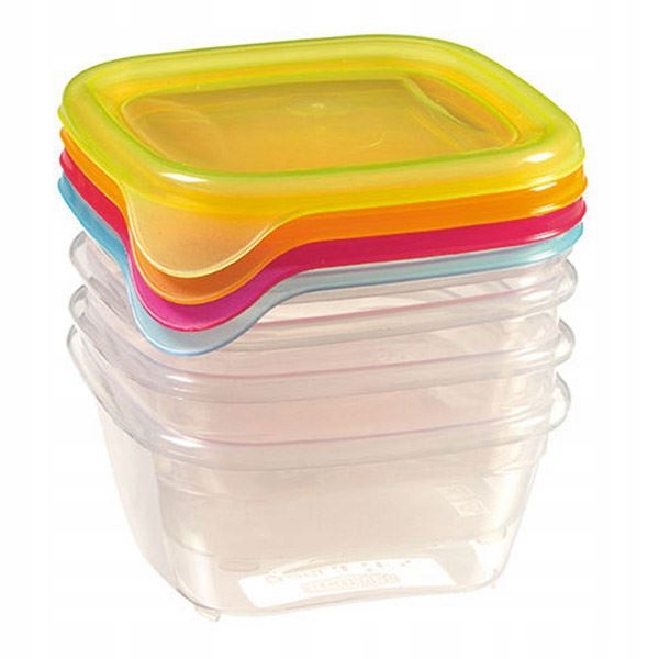 - це практичне та стильне рішення для зберігання їжі. Виготовлений з високоякісного пластику, він характеризується довговічністю та стійкістю до механічних пошкоджень. Його ергономічний дизайн робить його простим у використанні та зберіганням. Набір складається з чотирьох контейнерів потужністю 0,25 л кожен. Висота контейнера 5 см.