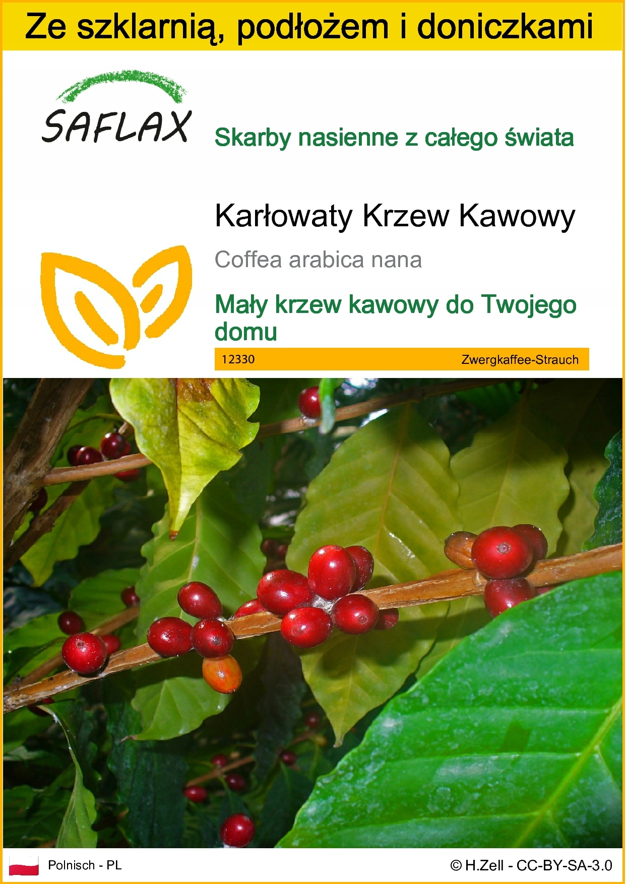 SAFLAX - Набір для вирощування - Карликовий кавовий кущ - 8 насінин - З міні-теплицею, середовищем для вирощування та 2 горщиками - Coffea arabica nana