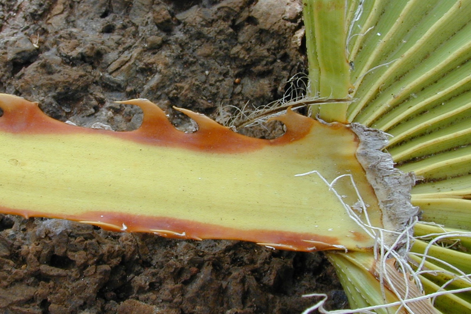 Корисна інформація: мексиканська бавовняна пальма росте дуже швидко і вертикально, з чарівною стрункою фігурою. Найбільш типові круглі коричневі волоски на переході від стебла листка до листкової пластинки та білі волокна, що виходять із відділів листка. Великі блискучі зелені віялові листя, розташовані на червонувато-коричневих і колючих стеблах. Висушене листя з часом покриє стовбур і захистить його від пожежі в природному середовищі. Це також дало Вашингтонії назву Petticoat Palm.