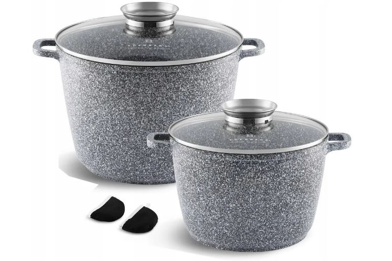 Набір з 2 високих мармурових каструль EDEL HOFF / ZILNER / MISOLI / EDENBERG 10,2 л + 6,2 л зі скляною кришкою. Виготовлений з литого алюмінію з мармуровим антипригарним покриттям