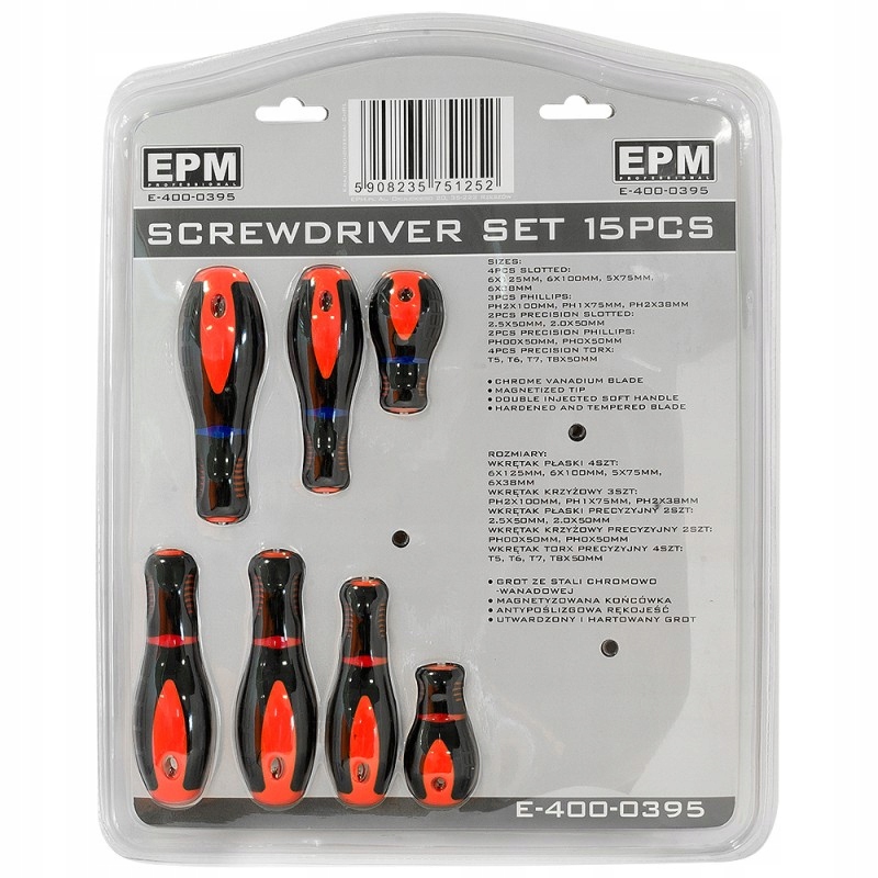 - 4 плоскі викрутки: 6x125 мм, 6x100 мм, 5x75 мм, 6x38 мм