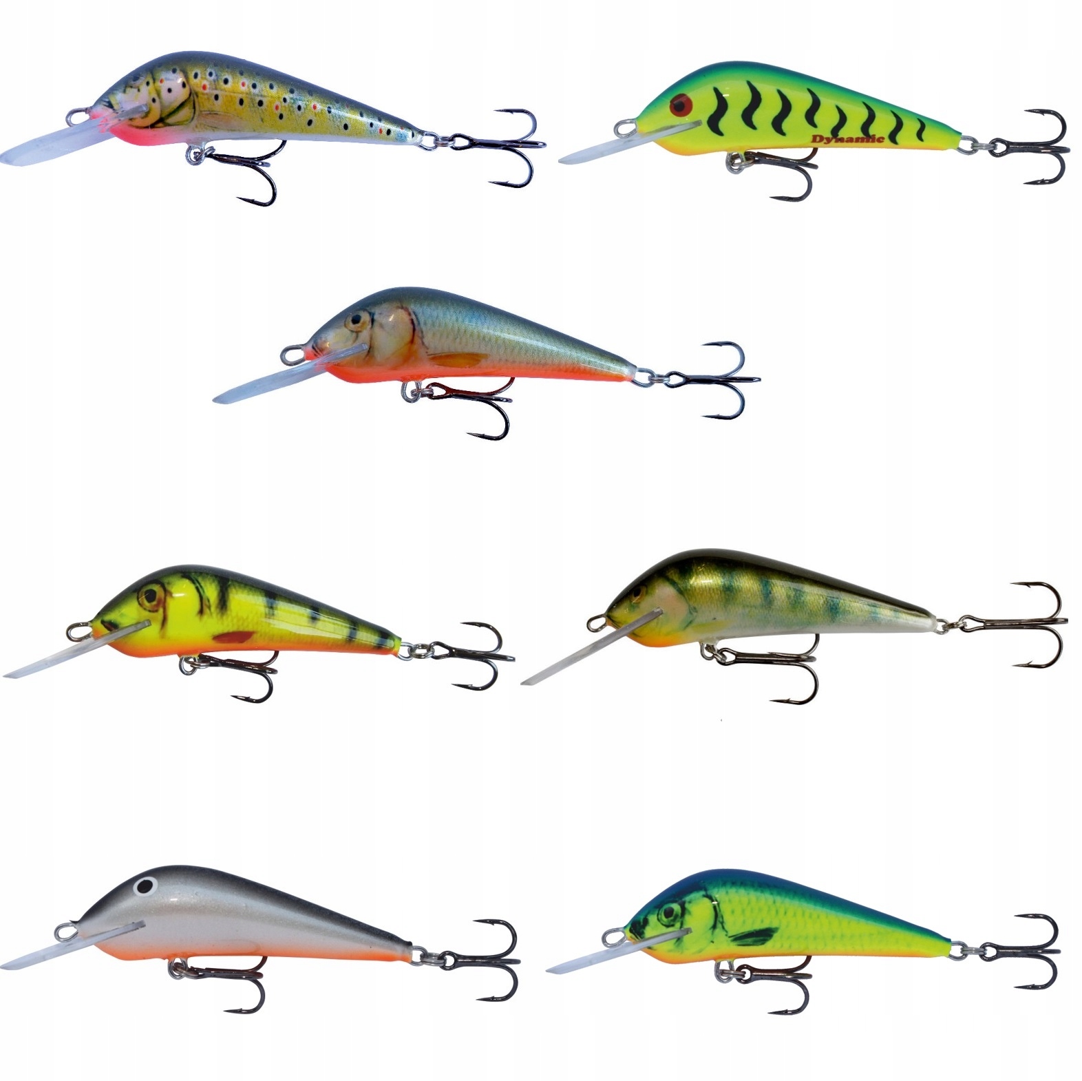 Форель Форель на основі перевірених форм із поморських річок. Працює неймовірно агресивно. Дуже швидко пірнає на дно. Це ідеально підійде для кельт-стрітів на Слупії чи Вєпші. Модель 7 см дуже хороша взимку і навесні. Менша модель довжиною 6 см краще підходить для літньої товстолобика на нижньому рівні річки. Чудово підходить для річкової та озерної щуки при використанні більш легких наборів. Особливо ефективний у похмурі, темні дні в кольорах GT і RT. Модель 5 см - відмінна наживка для форелі. Він дуже добре працює з електрикою. Надійний на великій низинній річці для лову головня і вусача. Чудово ловити динаміт дріфтом, його дія завжди добре відчувається.