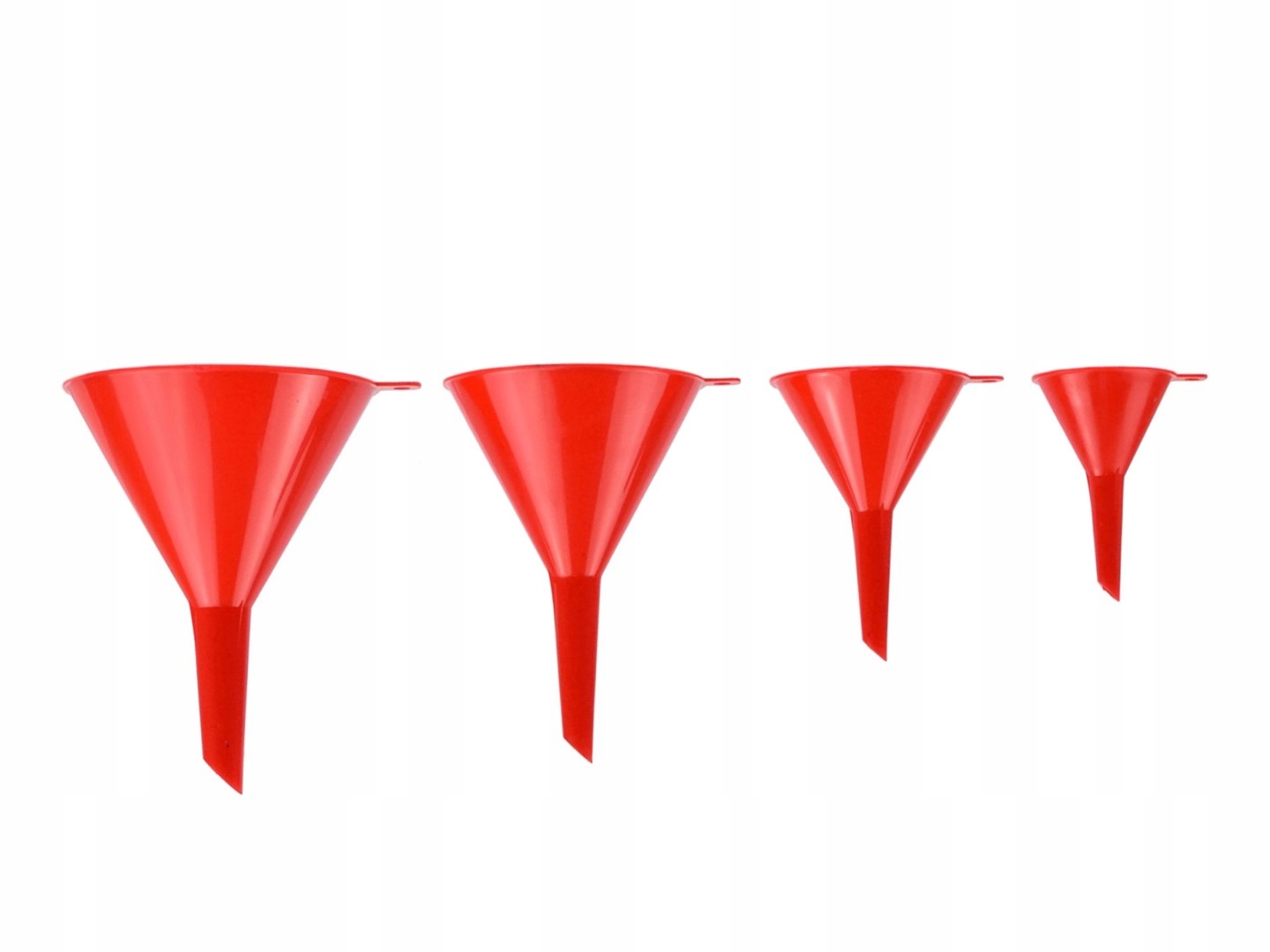 ✔️ У набір входить 4 лійки діаметром 52 мм, 76 мм, 100 мм і 120 мм, що дозволяє вибрати відповідний аксесуар залежно від розміру наповнювача та виду виконуваної діяльності - від заливання склоомивача, через заливання палива в газонокосарку, до заповнення великих баків у садових обприскувачах.