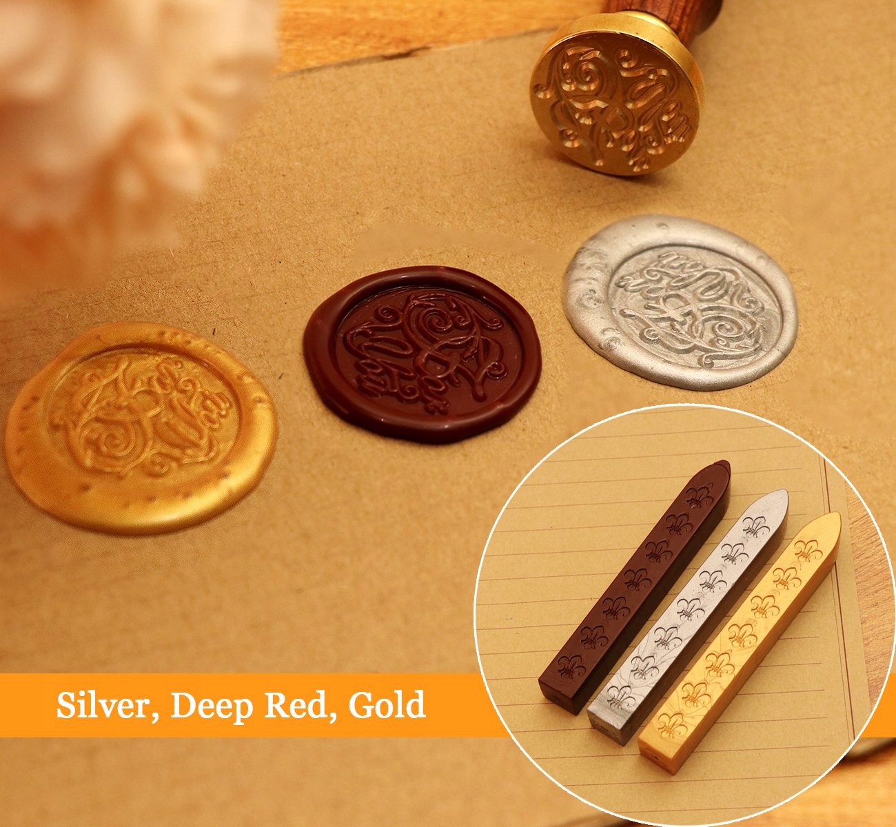 - Наші воскові бруски доступні в благородних вінтажних кольорах: червоний, золотий і срібний