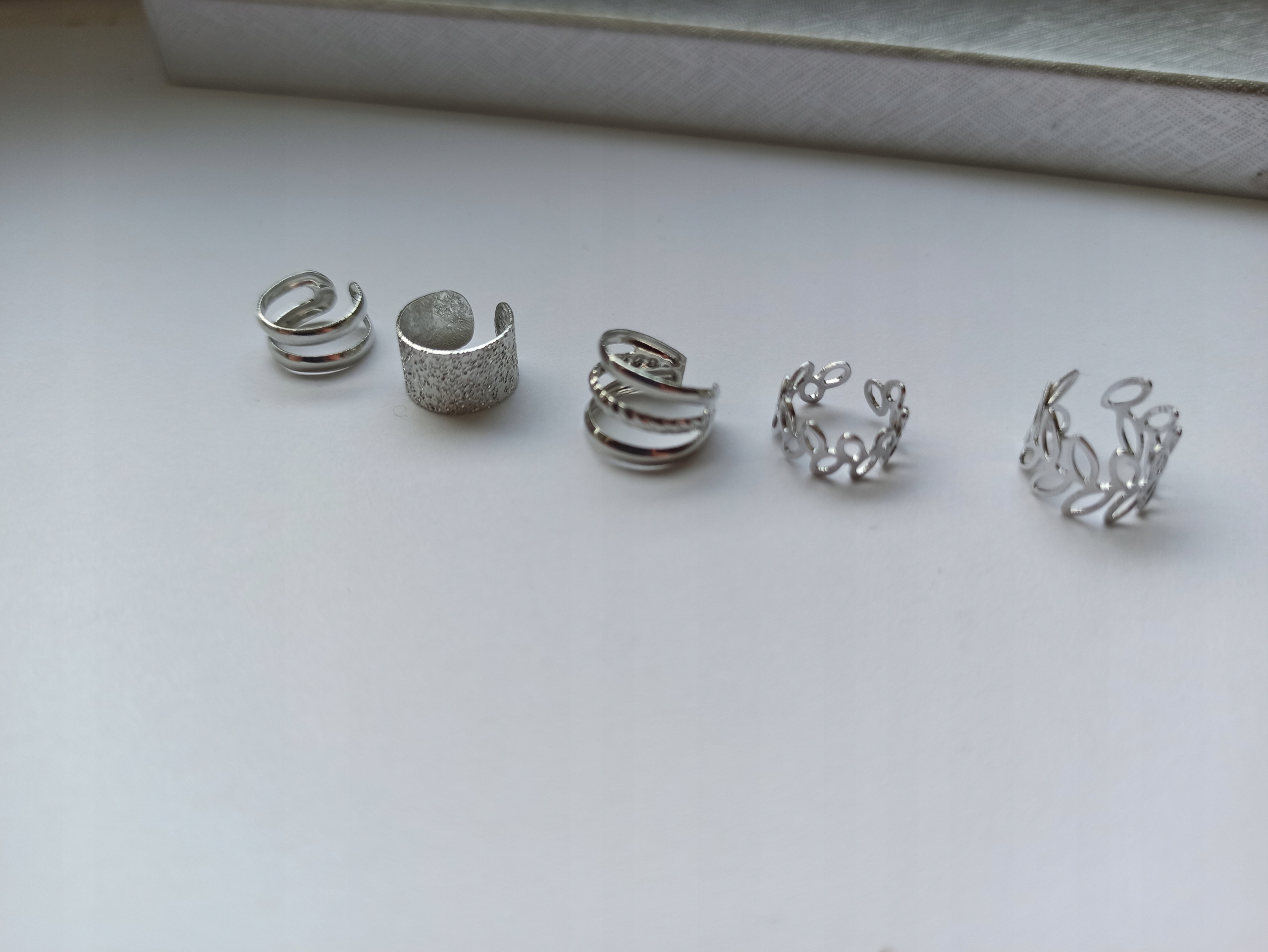 Сільверленд -ear -ear -шапки -класичні металеві вушні. Їх простий дизайн з мотивом листя та срібним кольором робить їх ідеальним доповненням до багатьох стилів. Ермуфи мають застібку, що пристосовуються, вони пристосовані для носіння як на правому, так і на лівому вусі і, ймовірно, завдяки спокійному способу носіння. Набір складається з п’яти пар вушних вух, що дає можливість вибирати правильну модель для кожного випадку. У Earmuffs немає каменів, що робить їх ідеальним вибором для людей, які віддають перевагу мінімалістичним аксесуарам.