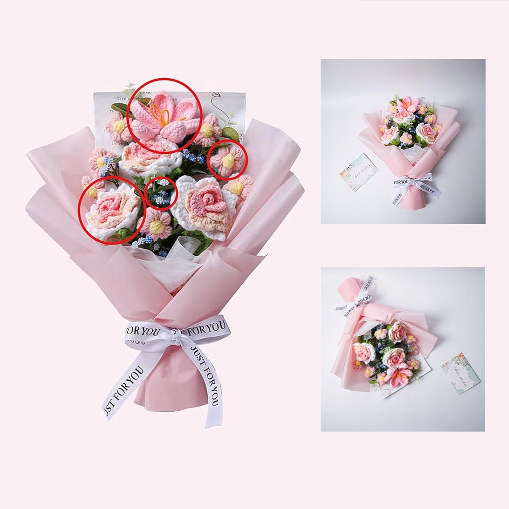 гарний букет в’язаних гачком квітів – ідеальний вибір для подарунка, особливо з огляду на його продуману упаковку. Він міцніший, ніж звичайний букет, тому дарує постійну дозу тепла та радості. Незалежно від того, чи це день народження, ювілей, День святого Валентина, День матері чи просто нагода, цей букет обов’язково зворушить серця та скрасить дні.