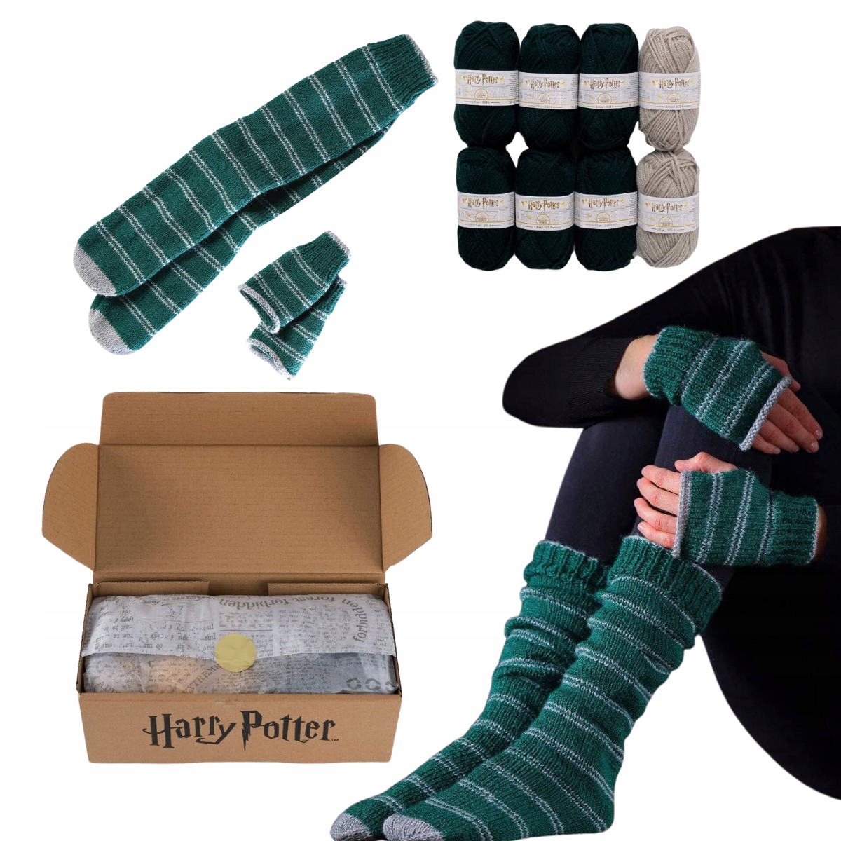НАБІР В'ЯЗАННЯ ГАЧКОМ СЛИЗЕРИН ШКАПЕТКИ + РУКАВИЧКИ