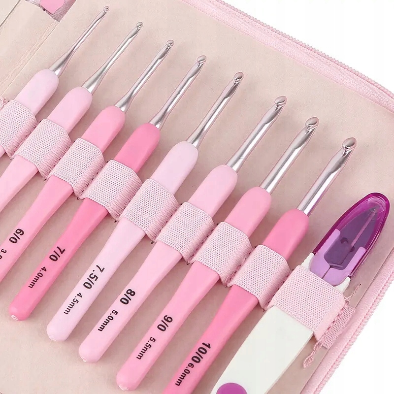 ⭐ЕРГОНОМІЧНІ ГАЧКИ НАБІР 8 ШТ. У РОЖЕВОМУ ФУТЛЯРІ + ЗАЖИМКИ⭐