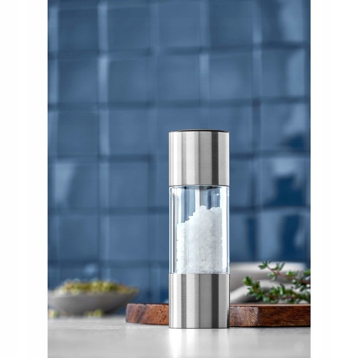 Ручний подрібнювач WMF Mini виготовлено з нержавіючої сталі Cromargan®, запатентовано сто років тому. Комбінація 18% хрому та 10% нікелю робить продукт дуже міцним, стійким до подряпин і харчових кислот. Ємність для спецій з акрилу.