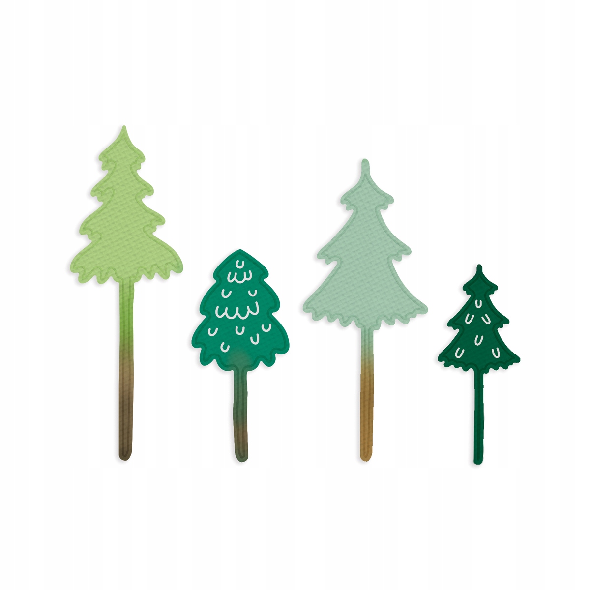 - Чотири вмирки у формі оригінальних ялинок на довгих стовбурах. Ідеально підходить для різдвяних творів та проектів з тематичними лісами.