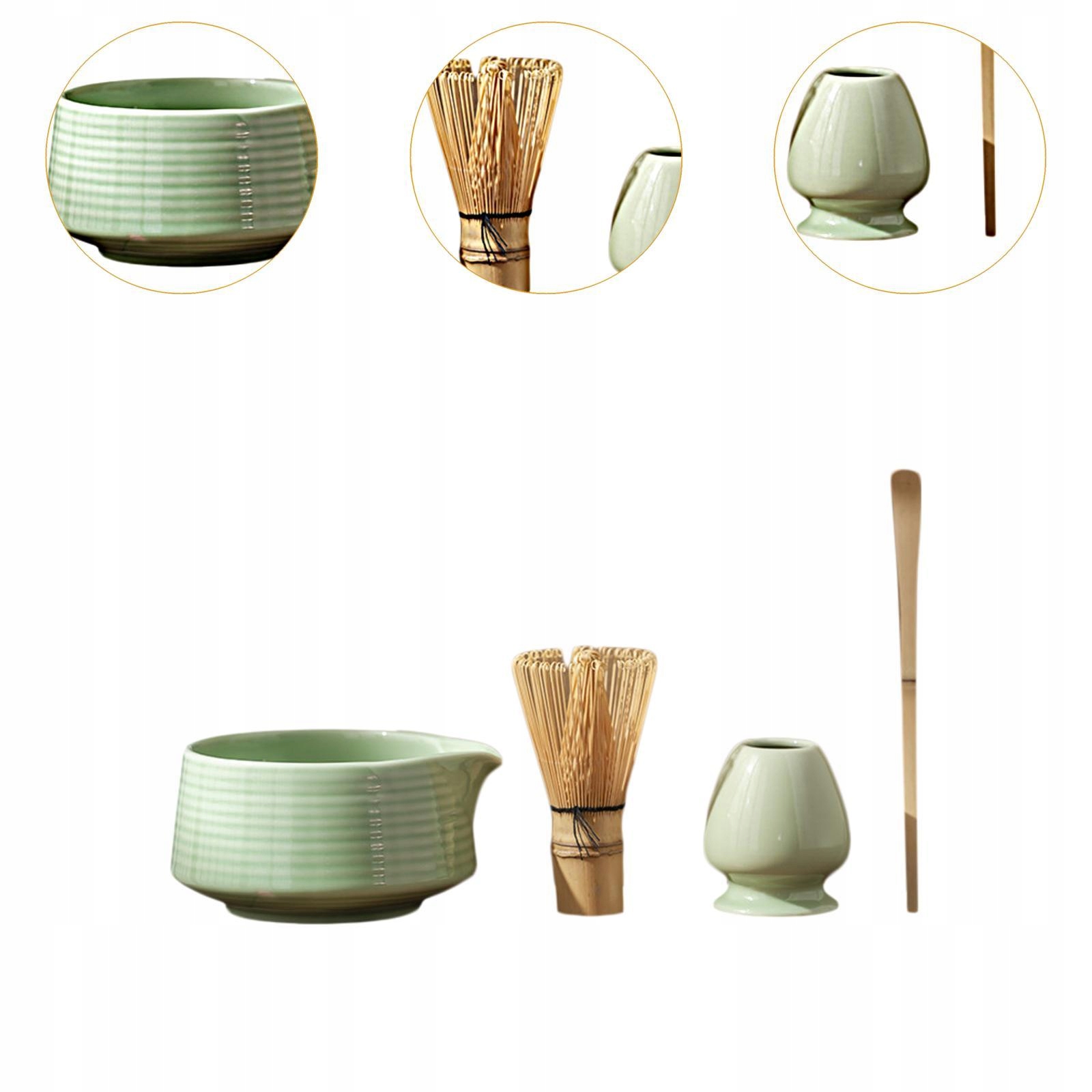 Набір японських віночків для матчу з 4 предметів, керамічних аксесуарів із носиком, зеленого кольору для матчі