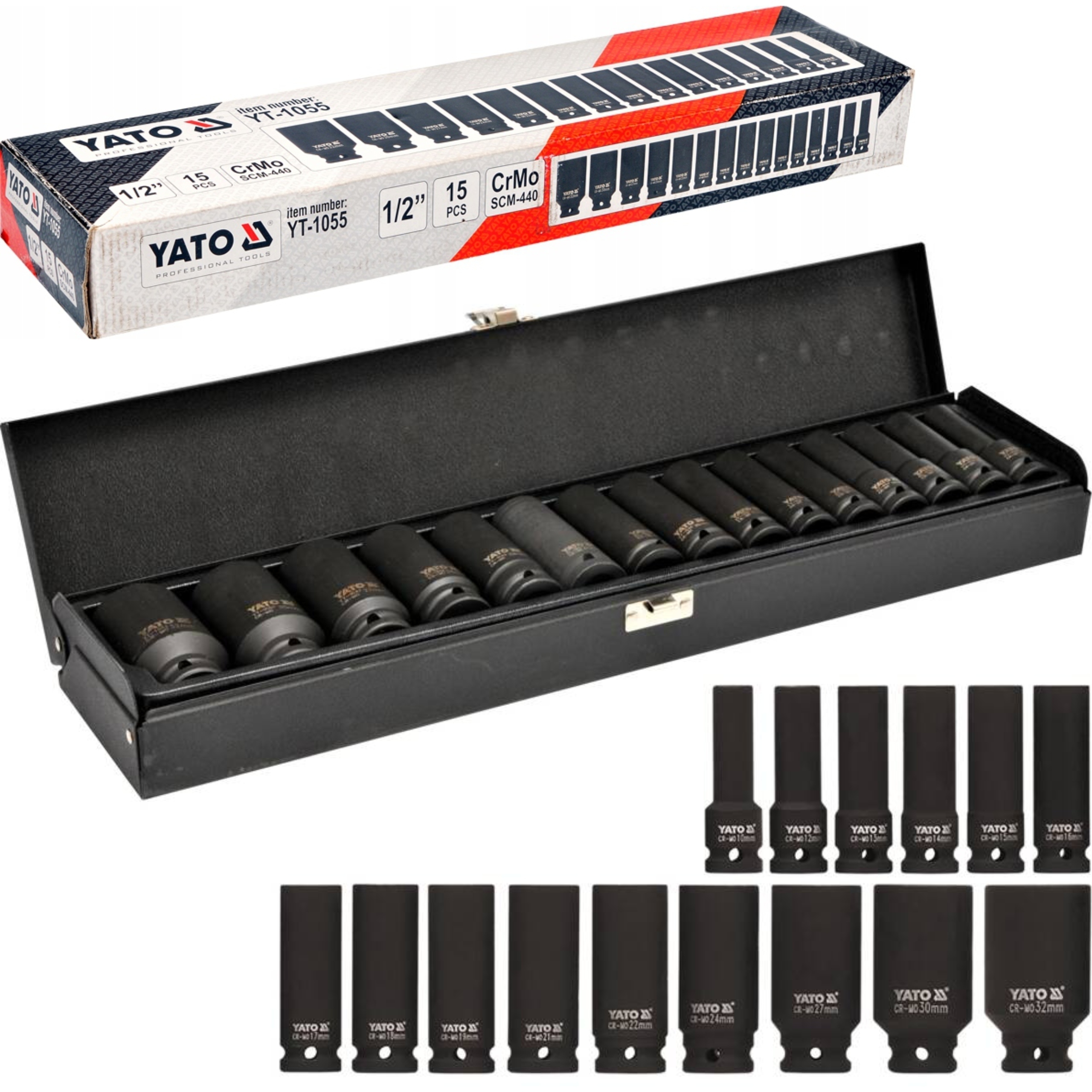 ⭐Довгі ударні головки YATO - набір з 15 торцевих ключів.