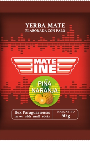 Pina Naranja - це ф’южн на основі ідеального поєднання йерба мате, що складається з маленьких літер, паличок і частинок з ананасом, апельсиновий цвіт і трави.