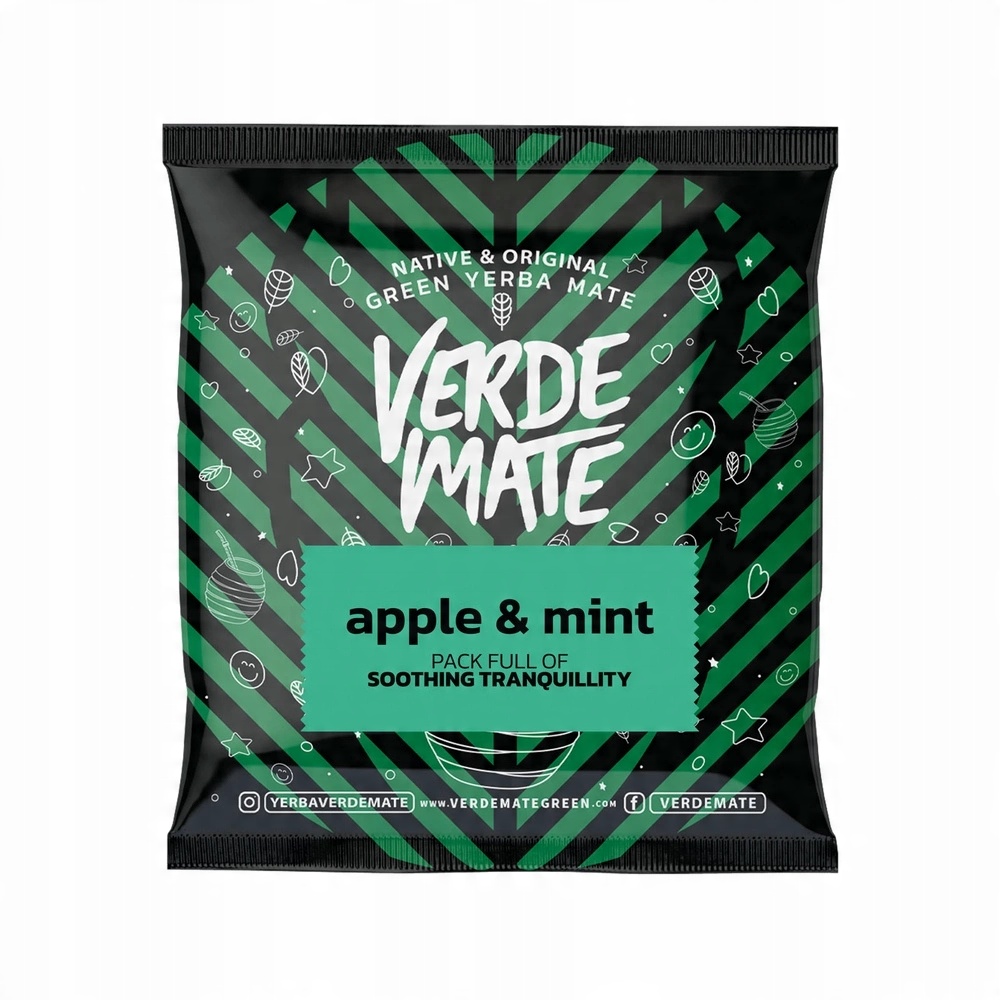 Verde Mate Green Apple & Mint – це свіжа композиція, яка поєднує в собі смак м’якого зеленого йерба мате та соковитості яблуко та освіжаюча м'ята. На перший план за смаком і ароматом однозначно виходить м'ята. Це пов'язано з використанням в рецепті не тільки висушеного листя м'яти, а й натуральної м'ятної олії, завдяки якій нота м'яти стає ще більш інтенсивною. Однак він не поступається яблучному акценту, який тут теж дуже чіткий. У складі цієї суміші сушене яблуко становить аж 15%! Він додає приємну солодкість і соковитість. Все це доповнюється не менш ароматними, але менш виразними: лимонною травою та пелюстками календули.
