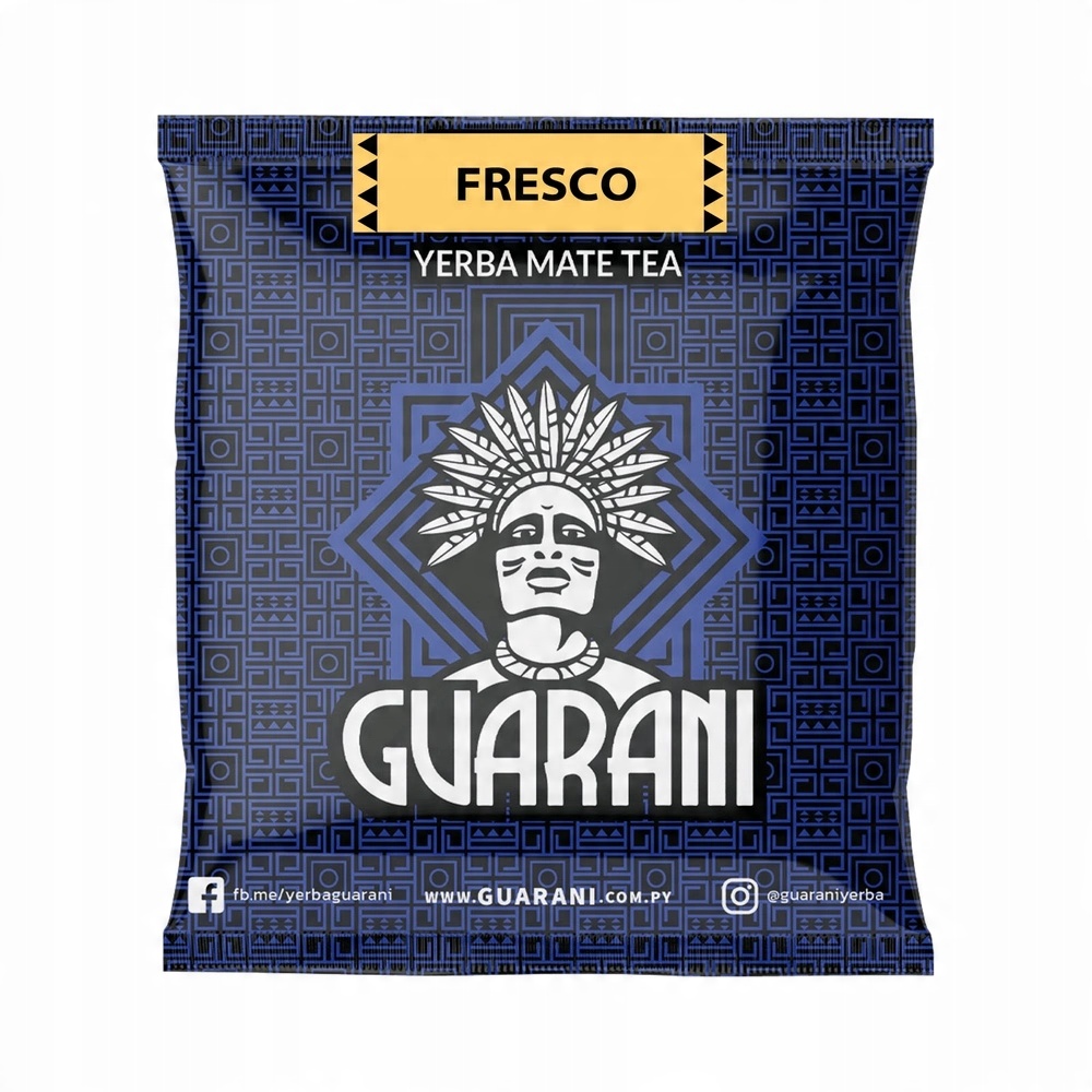 Guarani Fresco - це дуже оригінальна, освіжаюча композиція, яка поєднує в собі димний, пиловий і злегка гіркуватий парагвайський йерба мате з характерними ароматними травами. До цієї суміші входять: освіжаюча м'ята, приємно бальзамічний шавлія, виразний розмарин, хрусткий евкаліпт і цитрусова нота лемонграс і лимонна вербена. Guarani Fresco чудово стимулює та додає енергії, а при приготуванні в холодному вигляді стає надзвичайно підбадьорливим напоєм, який ідеально підходить для спекотних днів.