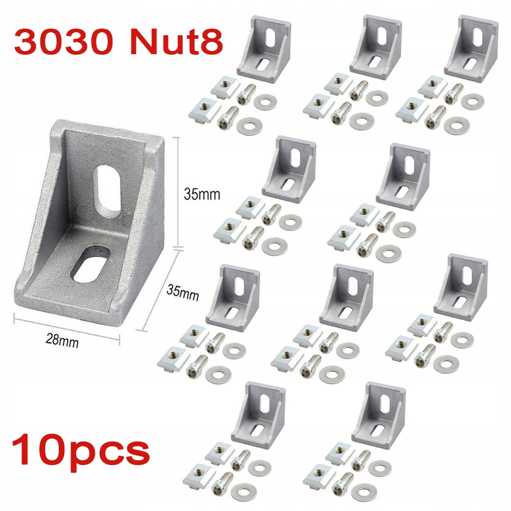 Набір з 10 монтажних кутників для з’єднувача з алюмінієвого профілю 3030