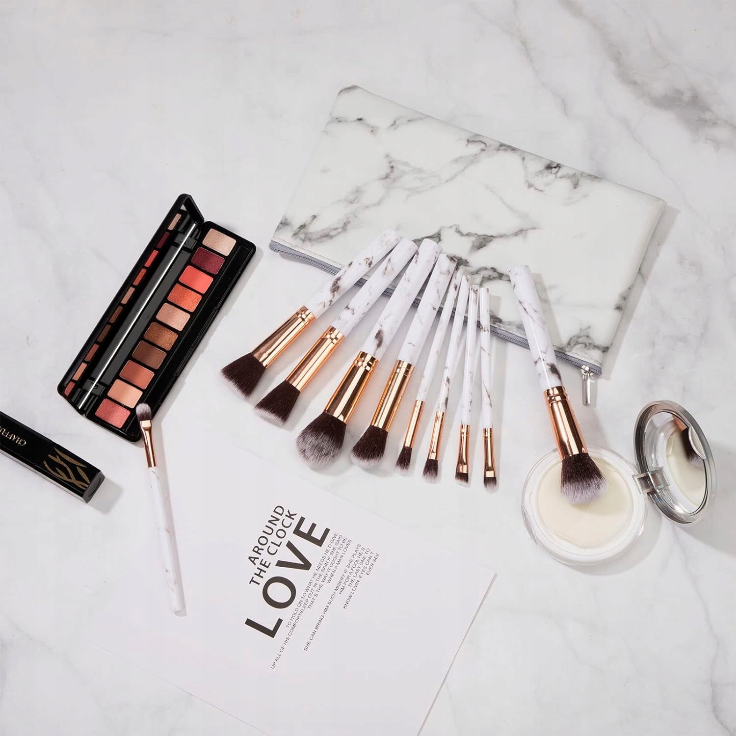 Набір з 10 пензлів для макіяжу, професійний набір мармурових пензлів
