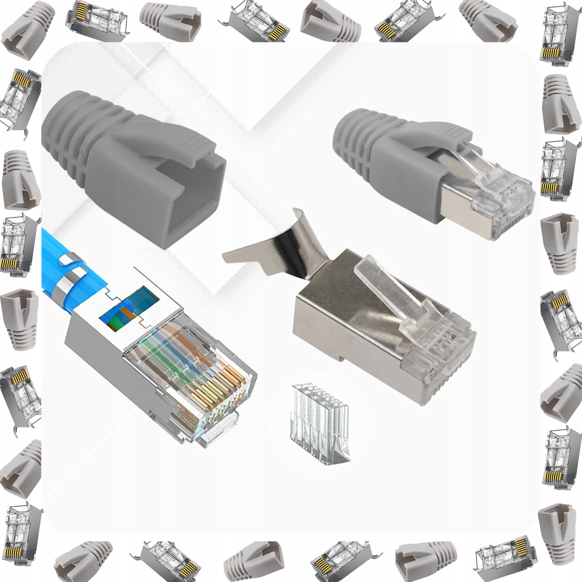 НАБІР З 10 ШТ. ШТЕКЕРІВ ЕКРАНОВАНОГО FTP STP RJ45 cat 6a 7 ТЕРМІНІВ ДЛЯ РОЗ’ЄМУ