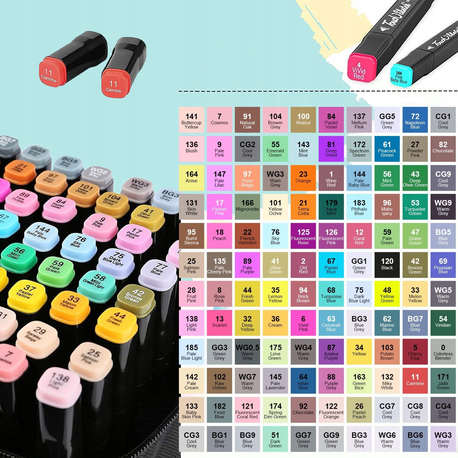 Набір з 120 двосторонніх алкогольних маркерів з тонким і товстим наконечником