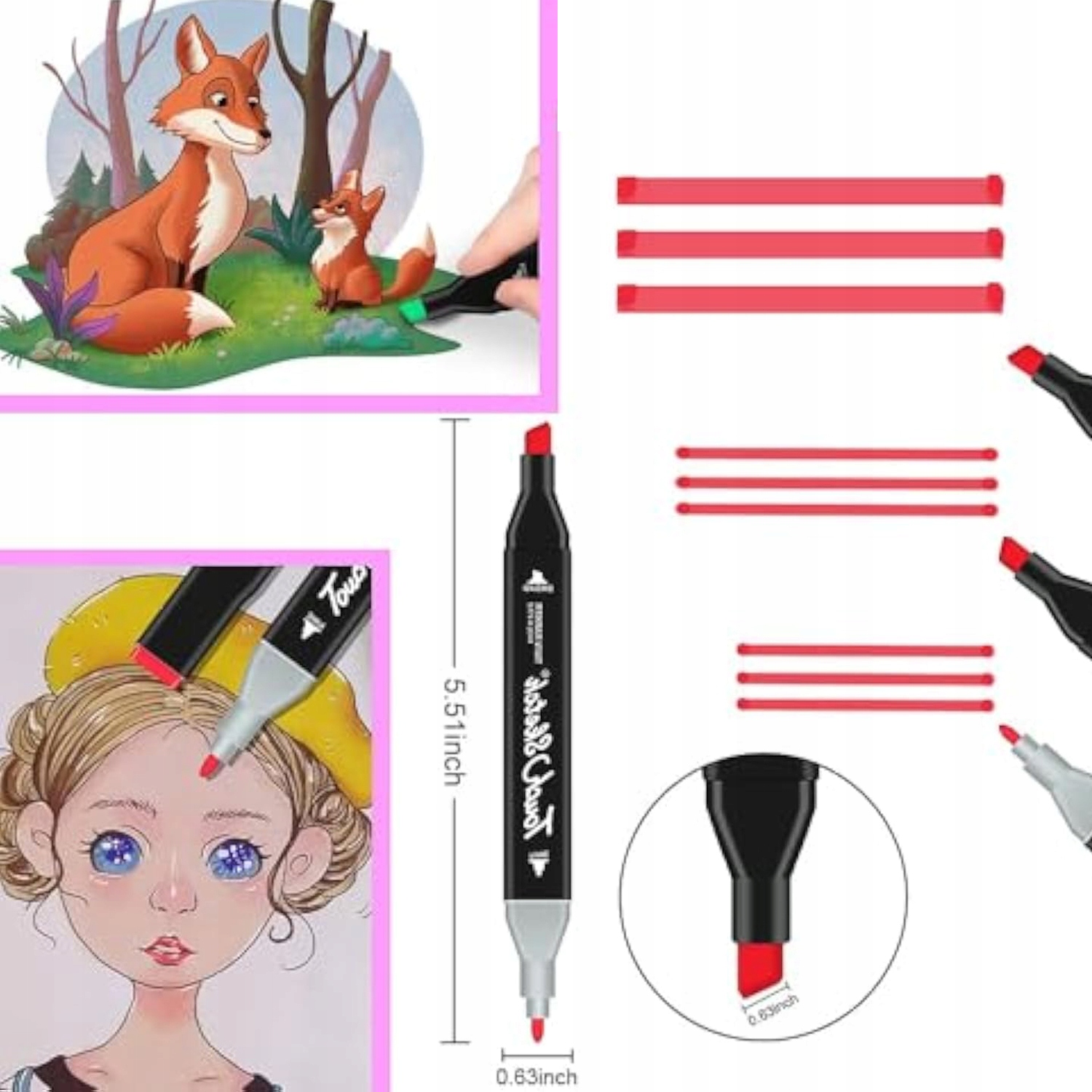 Кожен маркер оснащений тонким кінчиком 1 мм для точних контурів і товстого 6 мм наконечника для швидкого заповнення більших поверхонь. Завдяки цьому, набір ідеально підходить як для ескізів, розмальовки, так і каліграфії - один інструмент, багато можливостей!