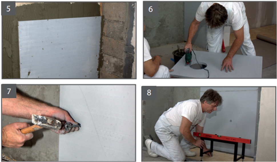 6. Перед тим, як приклеїти плиту до стіни з отвором для підключення димоходу, позначте розташування цього отвору на камінній дошці та виріжте отвір відповідними інструментами.