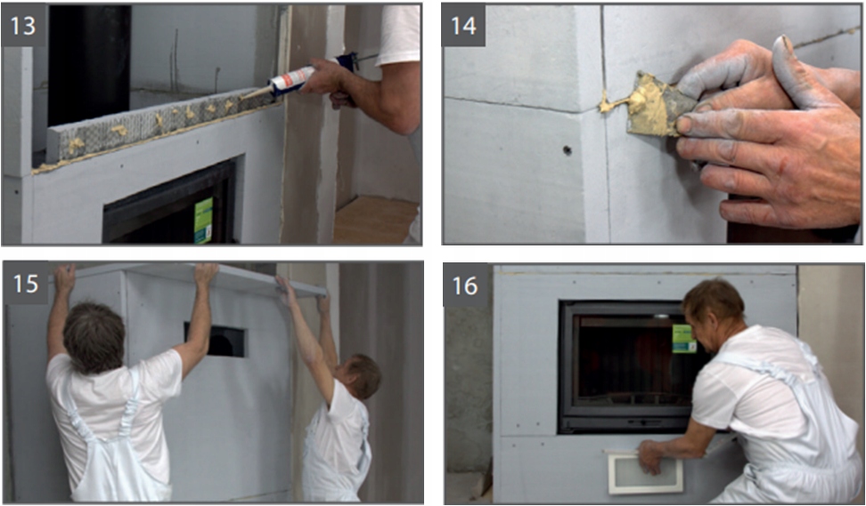 10. Позначте контур камінної топки, щоб вирізати в плиті вікно потрібного розміру. Не забувайте підтримувати простір для розширення, рекомендований виробником. Це впливає на правильну циркуляцію повітря всередині корпусу. Перевірте, чи правильно виконано дизайн - при необхідності внесіть необхідні виправлення перед наклеюванням дошки.