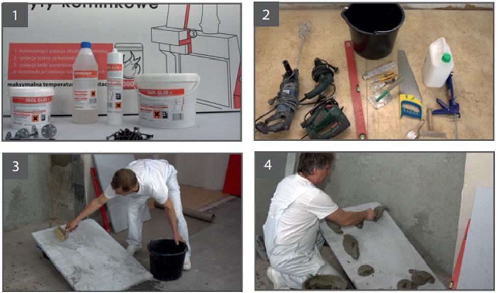 1. Підготуйте необхідні матеріали: камінні дошки, клей для з’єднання дощок, клейовий розчин, клей для приєднання дощок до стіни за каміном, а також грунтовку та шпаклівку.