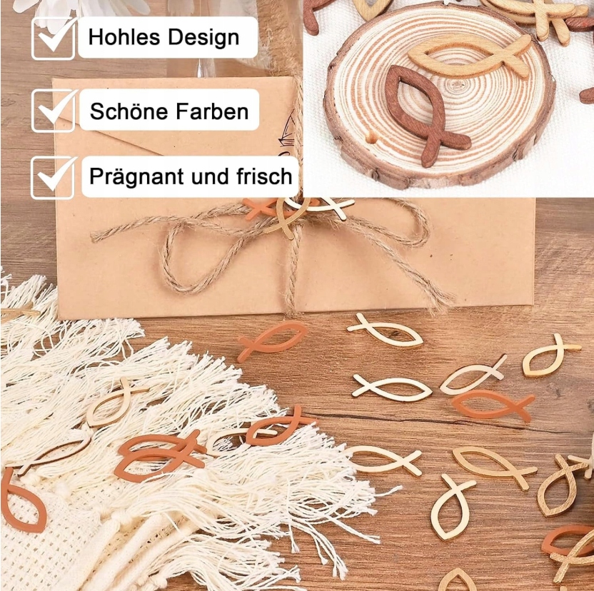Набір з 180 дерев’яних риб - прикраси для хрещення, причастя, підтвердження
