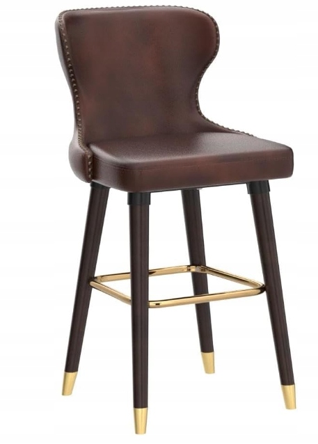 Коричнева синтетична шкіра, заклепки в рустикальному стилі та золоті ніжки роблять барні табурети – це справжні меблі в стилі ретро з розкішним характером.