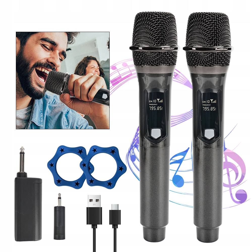 🎤 2 бездротові мікрофони 2.4G підключення Надійний захист від перешкод звуку Plug and Play