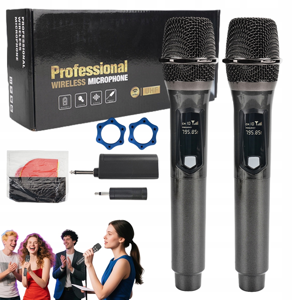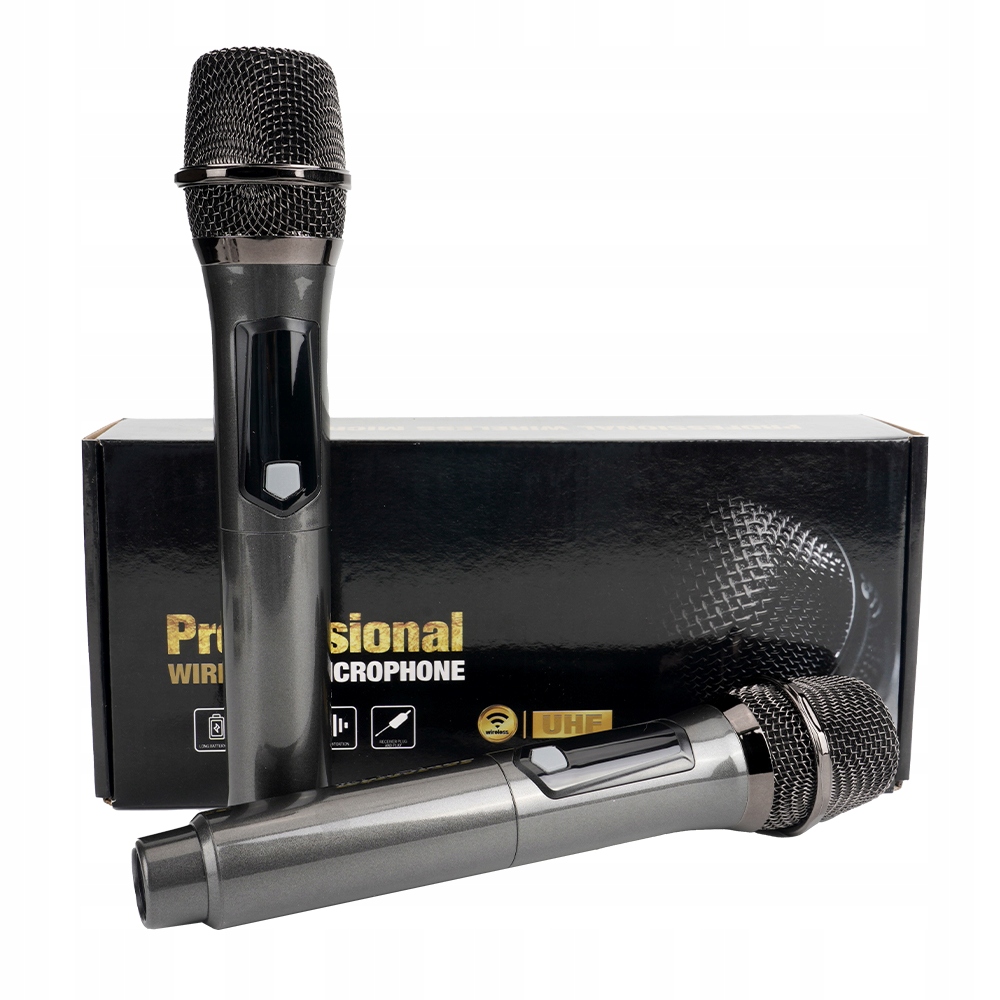 НАБІР З 2 БЕЗДРОТОВИХ АКУМУЛЯТОРНИХ МІКРОФОНІВ 60M КАРАОКЕ DJ З ПЕРЕДАВАЧОМ