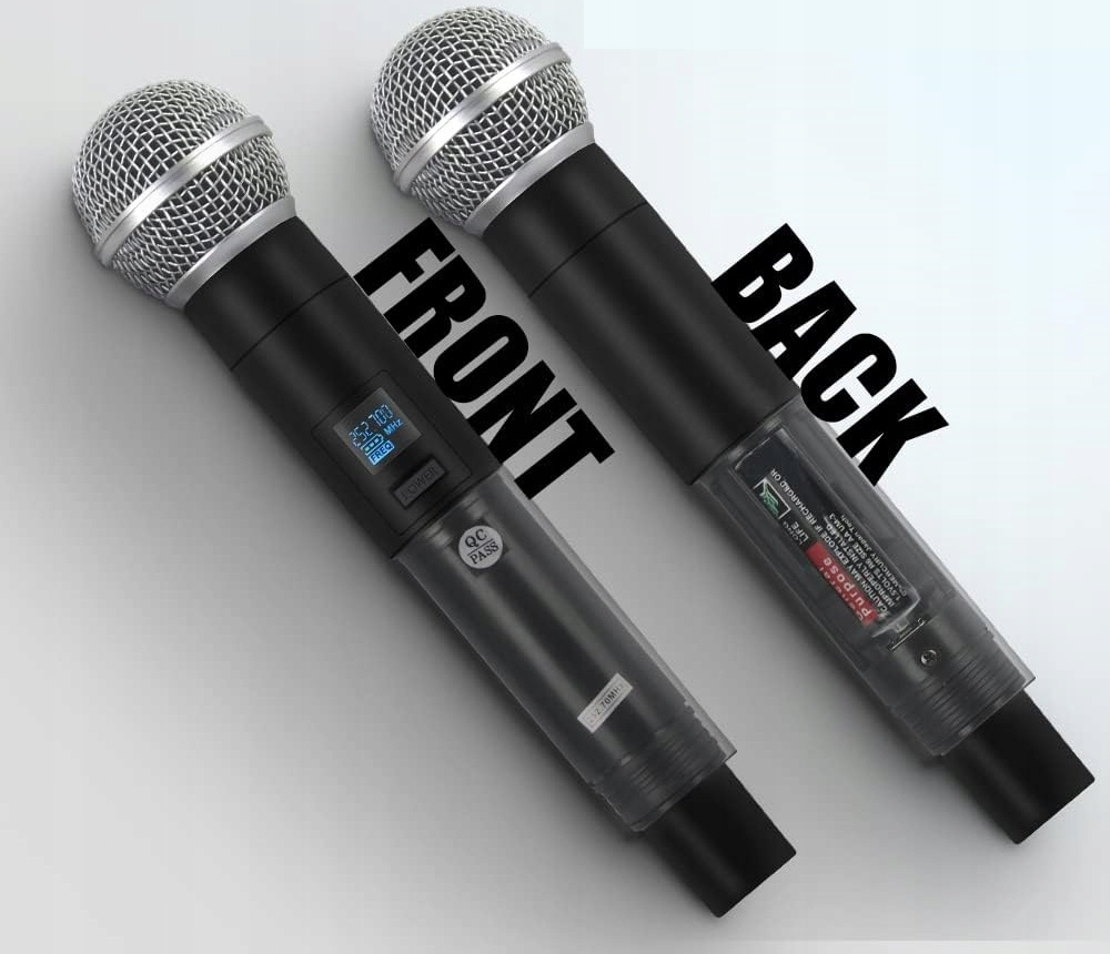 БЕЗДРОТОВА ПРОДУКЦІЯ: подвійна УКХ бездротова мікрофонна система з частотним діапазоном від 230 до 250 МГц. Приймач і передавач оснащені LCD екраном, робочий стан видно з першого погляду. Включає один вихід 6,3 мм і два симетричних виходи, що зручно для підключення різних зовнішніх пристроїв.